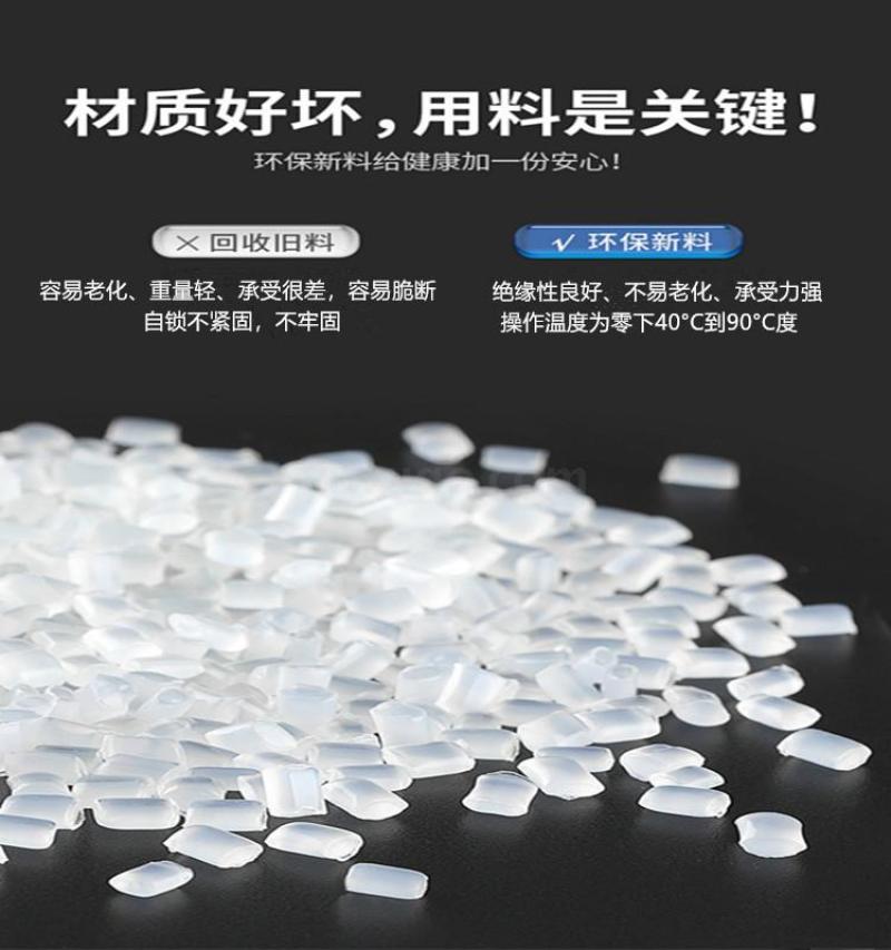 5.扎带采用UL认可之尼龙-66料制成,防火等级94V-2,耐酸、腐蚀、绝缘性良好、不易老化、重量轻、承受力强。操作温度为零下40到90度。综合机械性能远远优于一般工程塑料、是代替铜、不锈钢及其他有色金属的理想材料。
