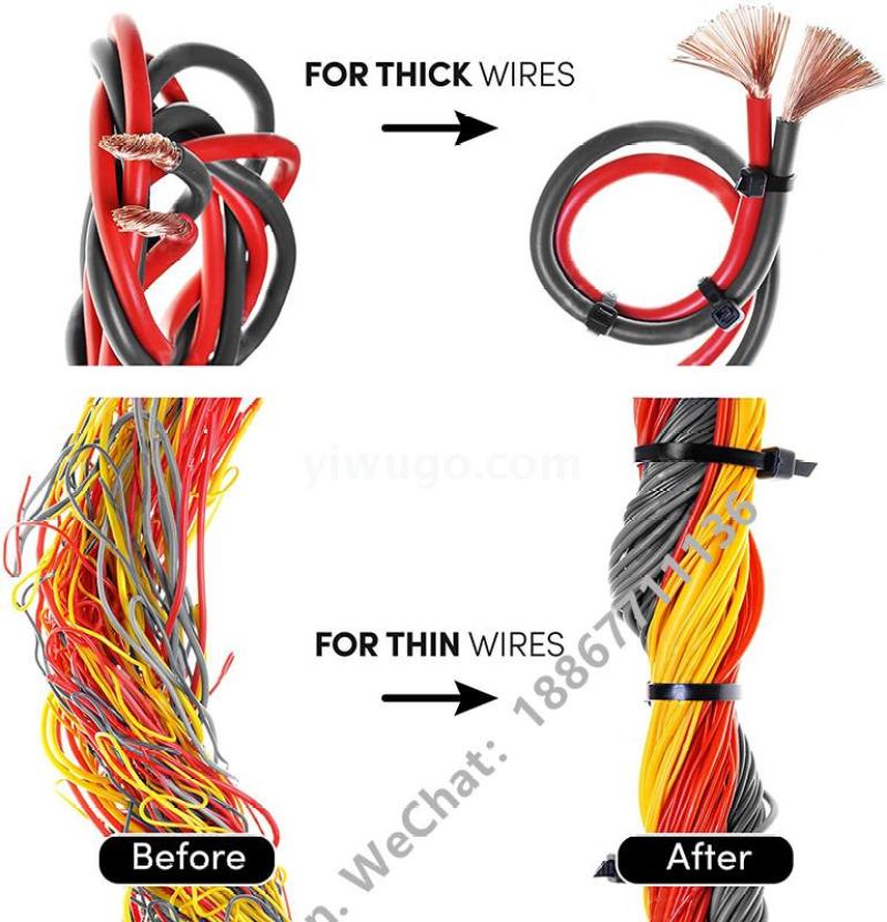 7.扎带广泛用于圣诞礼品厂、电子厂、线材加工厂、电线电缆、玩具厂、喜庆节日、文具百货、生鲜超市、民居日用、电工电器、接插件等物品的捆扎。