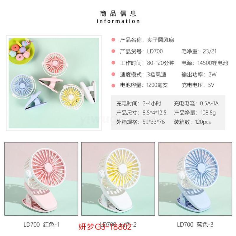 Large Wind Desktop Desk Fan Small Electric Fan USB Charging Clip Bedside Dormitory College Student Portable with Light 中文版