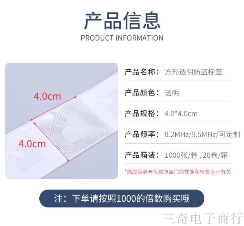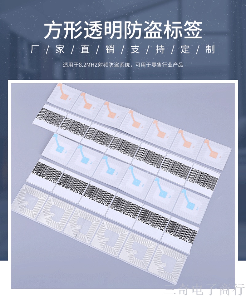 Anti-Theft Label 4 * 4cm Square Transparent Security Soft Label EAS RF Label Supermarket Department Store Anti-Theft19487 中文版