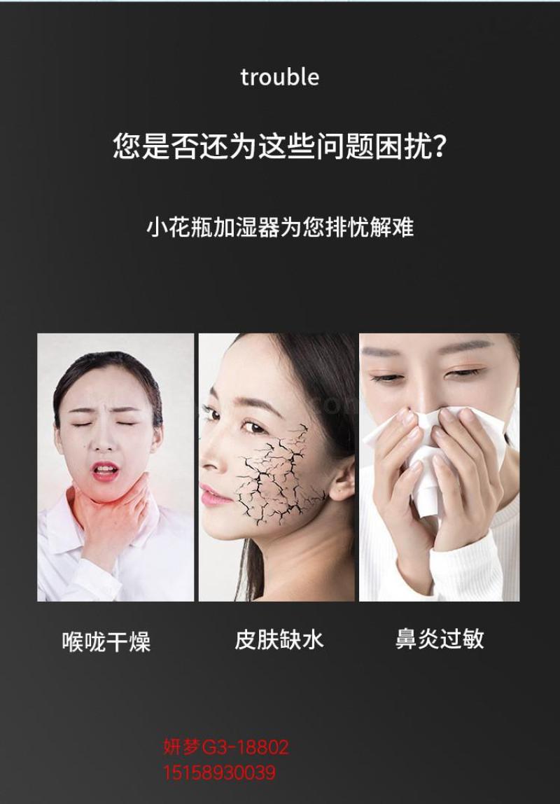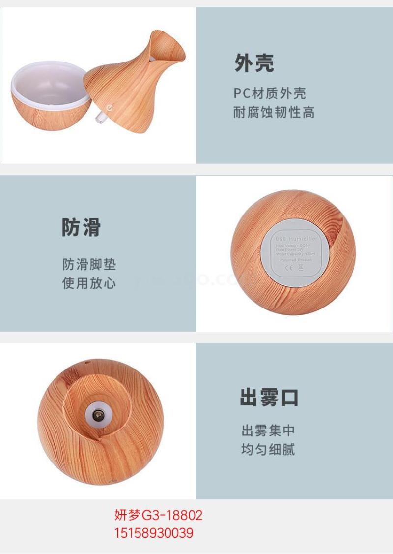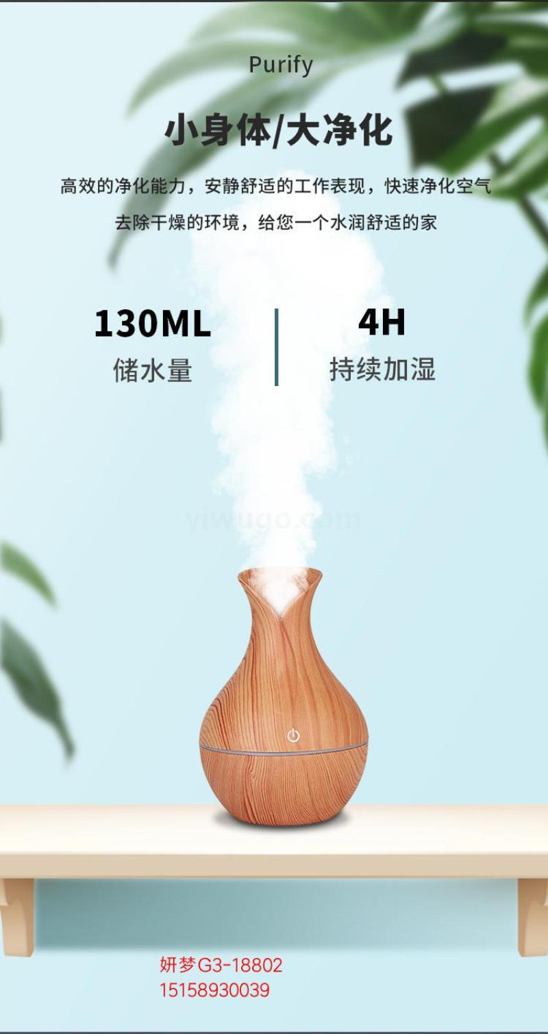 Cross-Border Air Wood Grain Small Vase Humidifier Sprayer Mini Noiseless Home Office Sleep Aid USB Humidifier 中文版