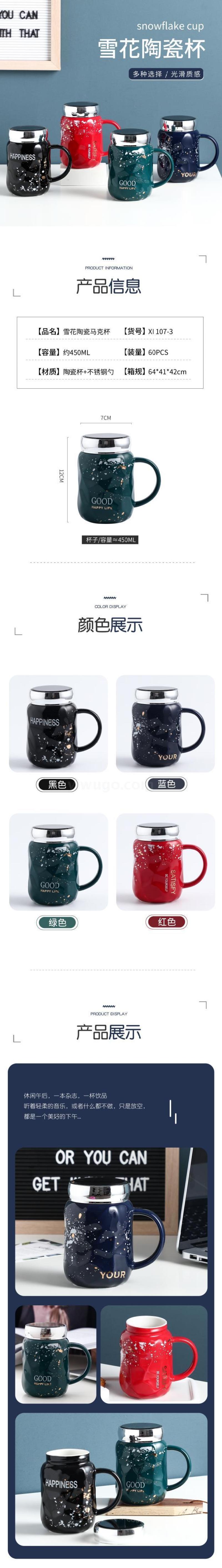 new snowflake mug mirror cup color glaze with lid daily household office cup coffee cup practical ceramic water cup 中文版