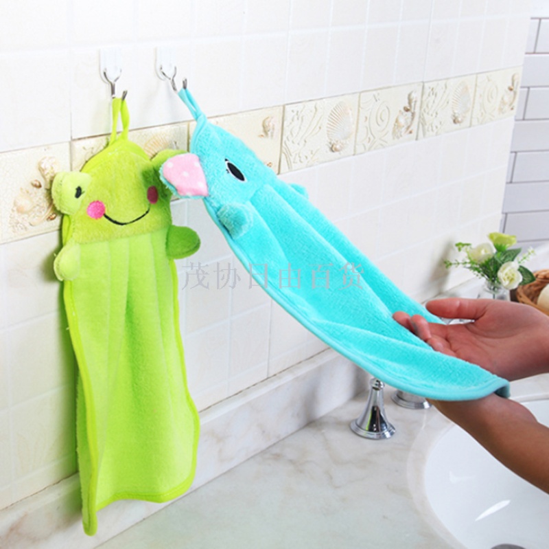 cute cartoon super soft coral fleece hand towel kitchen hanging absorbent cloth dishcloth 中文版
