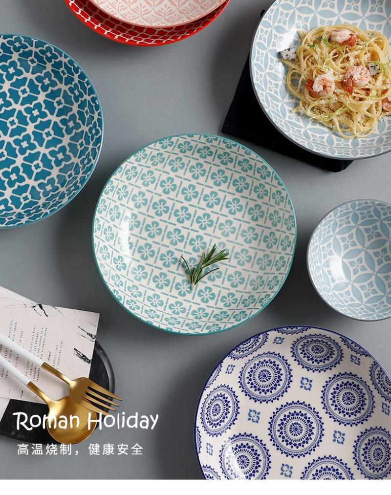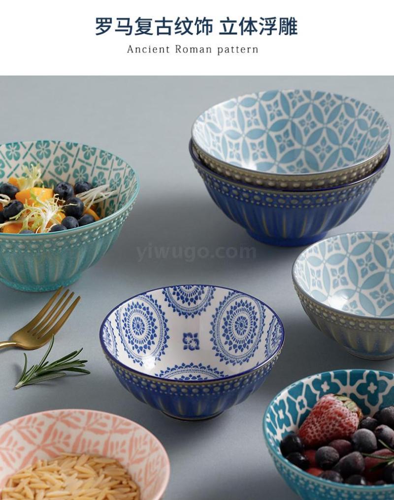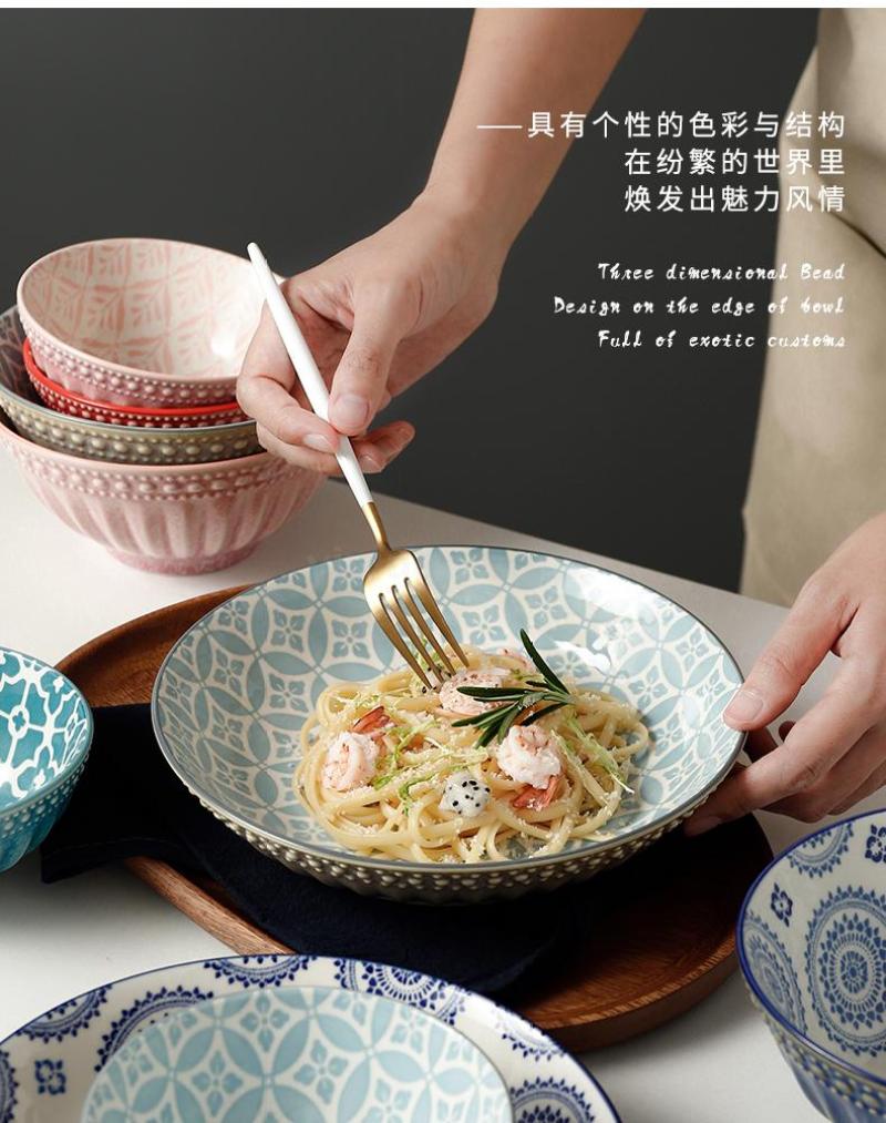nordic ceramic tableware simple fashion ceramic bowl dish & plate set rice bowl soup bowl embossed underglaze color salad bowl 中文版