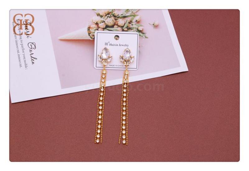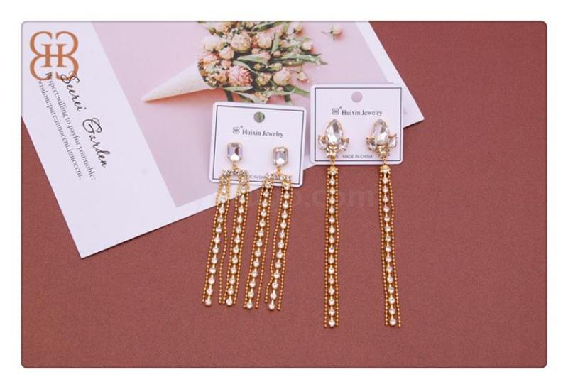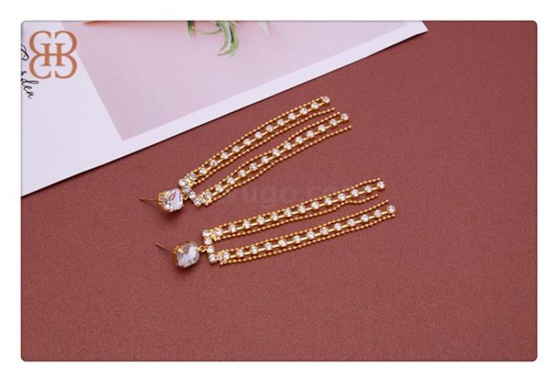 Baby name: Large and small bead water drilling embedded earrings, fashion, simple, light luxury earrings, long tassel personality earring earrings