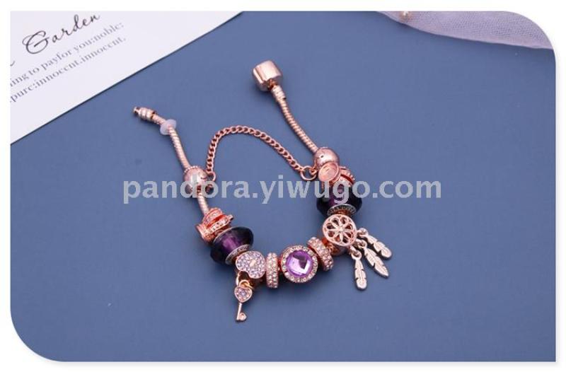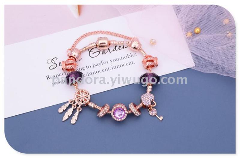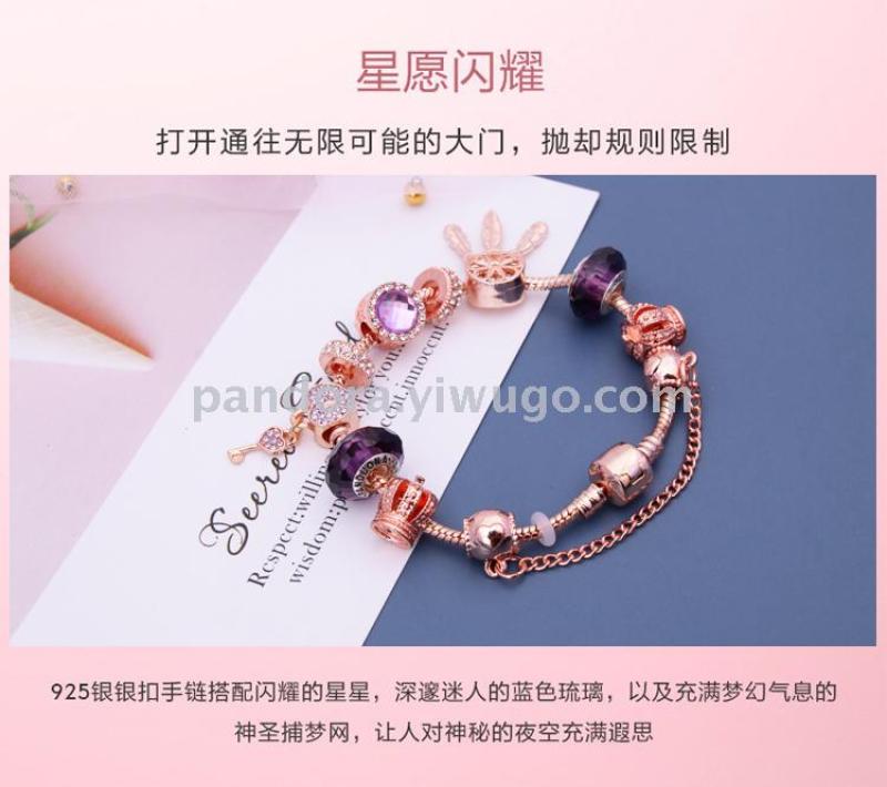 Product Name: Popular Dream Catcher Pendant 925 Silver Bracelet with Glass Heart Beads DIY String Jewelry, Celebrity Style