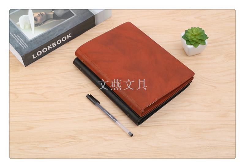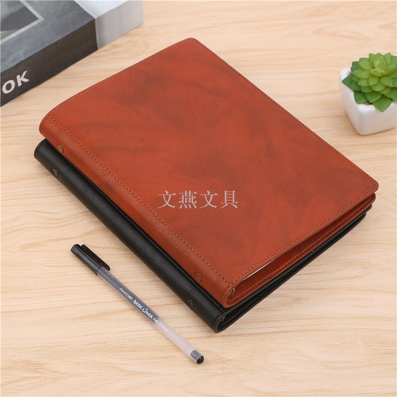 business notebook leather loose-leaf book work office meeting recording book retro notepad 中文版