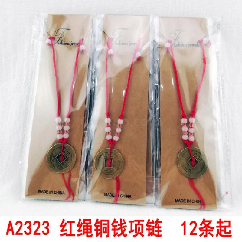 产品名称:A2323 红绳铜钱项链 款式随机发