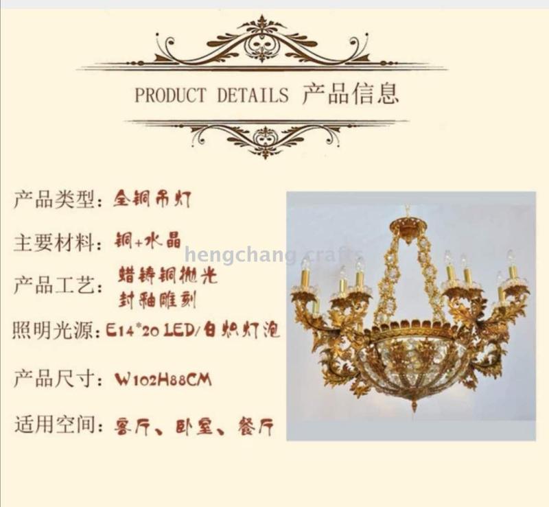 About Product:Court luxury living room copper French angel crystal chandelier light luxury villa European style pure copper duplex lamp in the living room