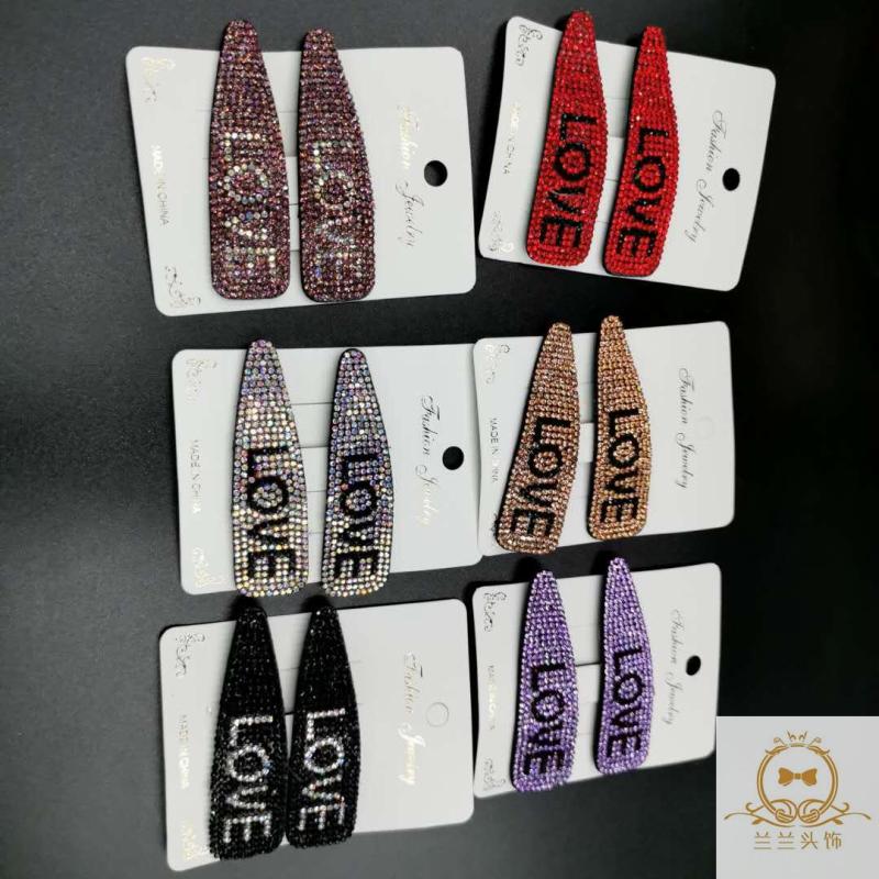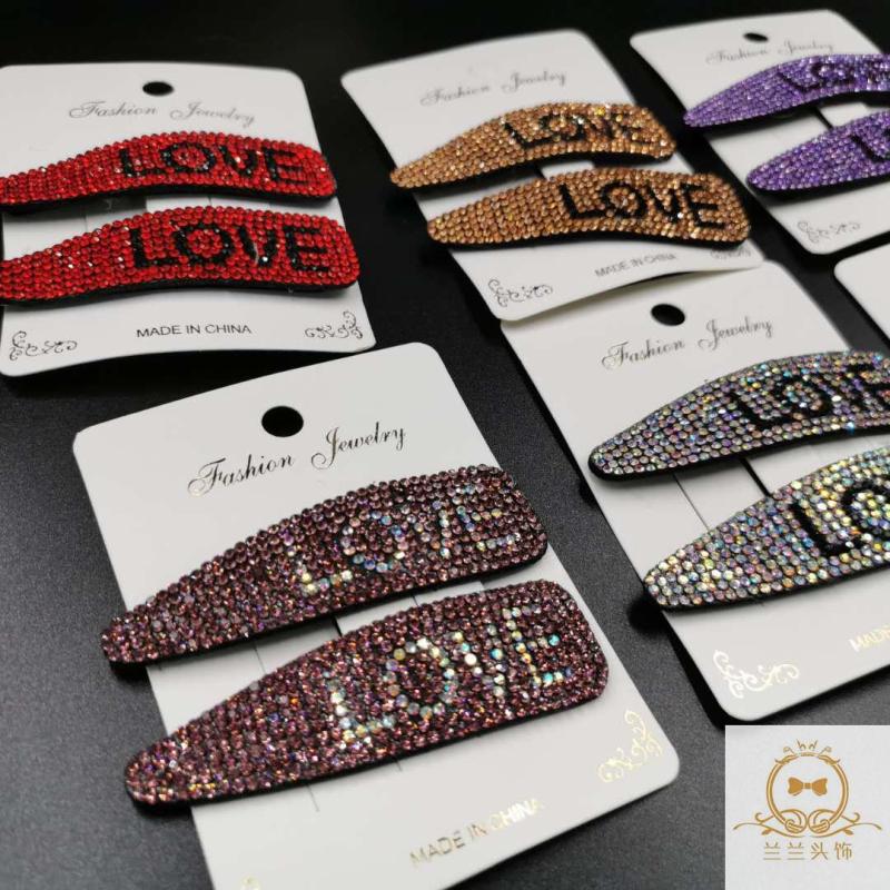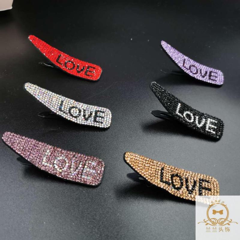 simple rhinestone side clip bb clip hairpin korean style bangs clip crystal hairpin full diamond one-word clip stall supply night market 中文版