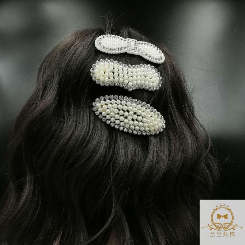 Pearl Barrettes Korean Ins Internet Celebrity Word Clip Simple Hair Clip Head Clip Girl Side Clip Stall Supply Night Market 中文版