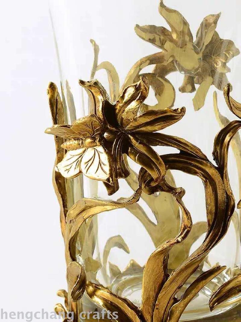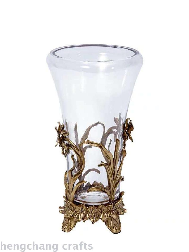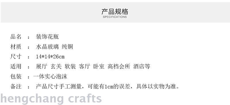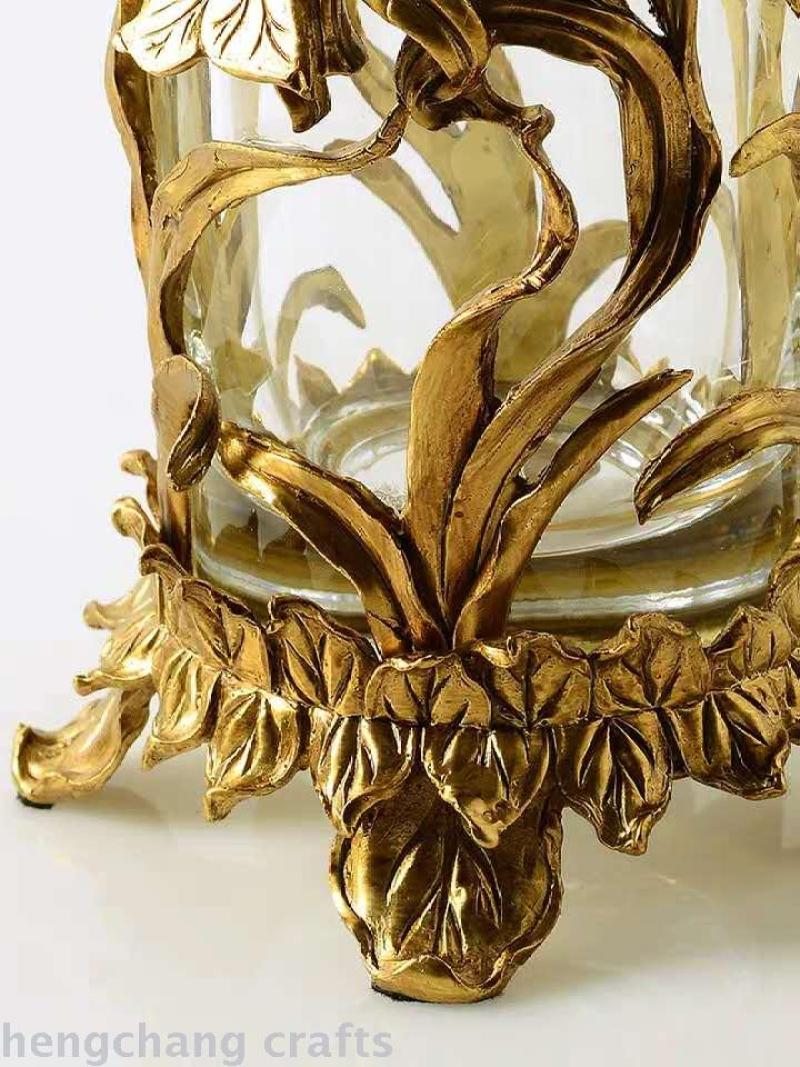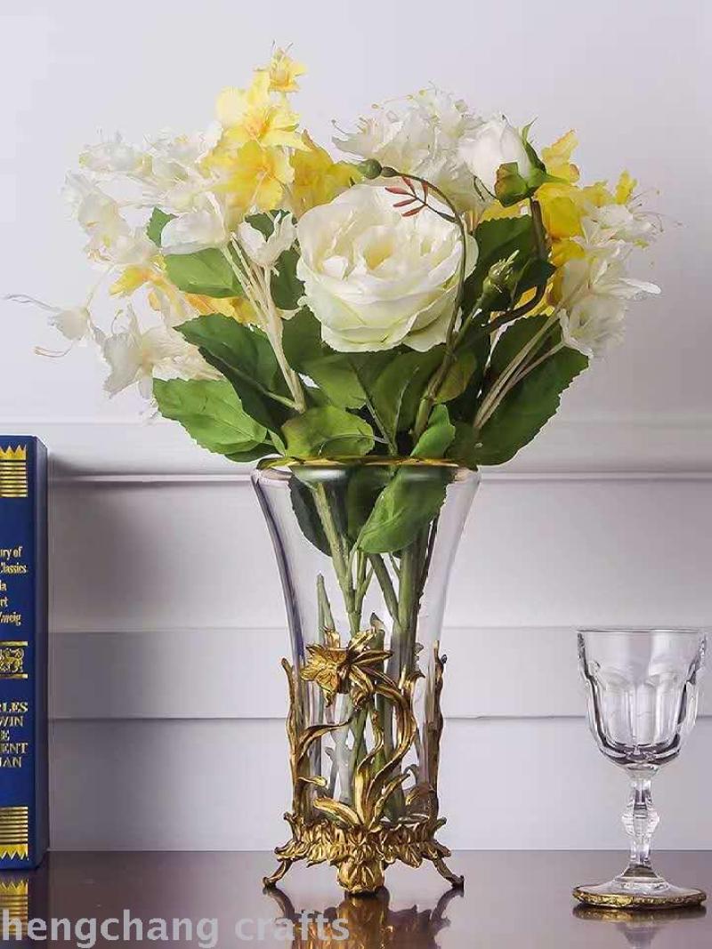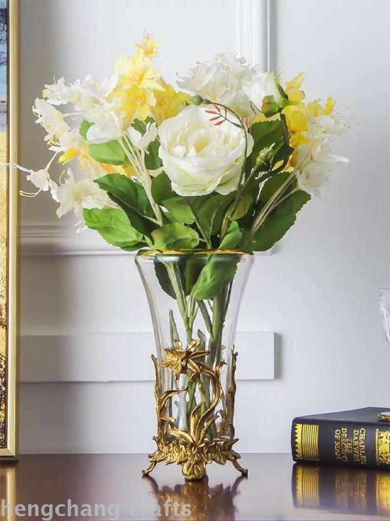 European-Style American Crystal Glass with Copper High-End Luxury Soft Decoration Home Ornament Transparent Living Room Vase Flower Flower Holder 中文版