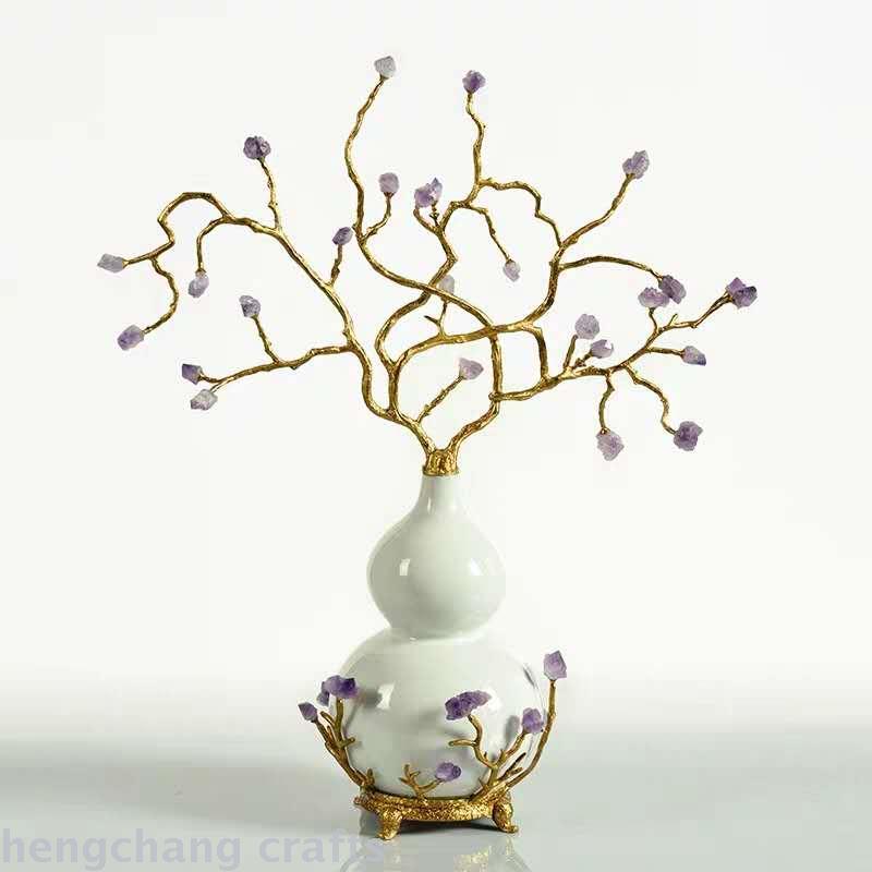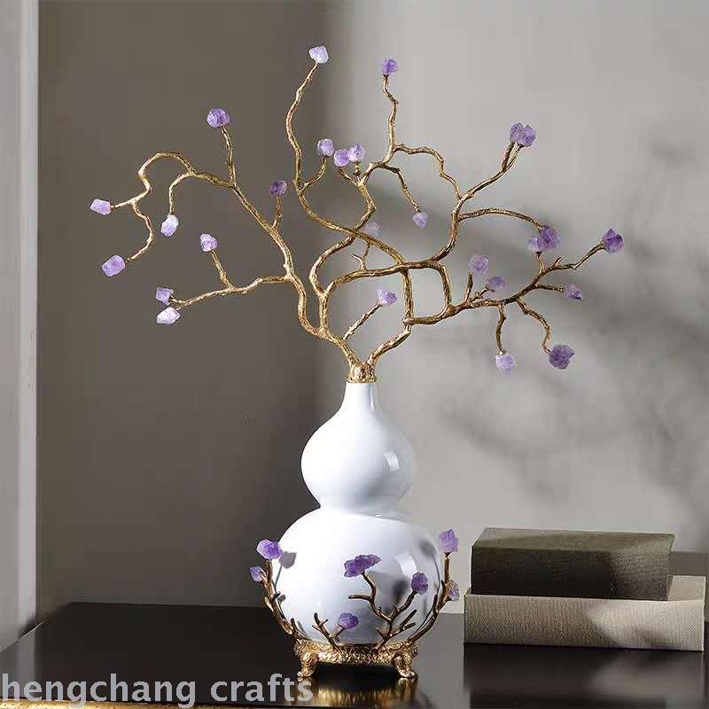American and European Style White Ice Crack Ceramic with Copper Gourd Ornaments Gift High-End Luxury Hallway Amethyst Decoration 中文版