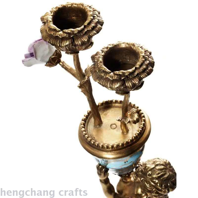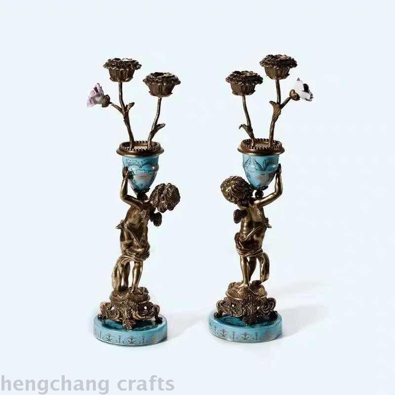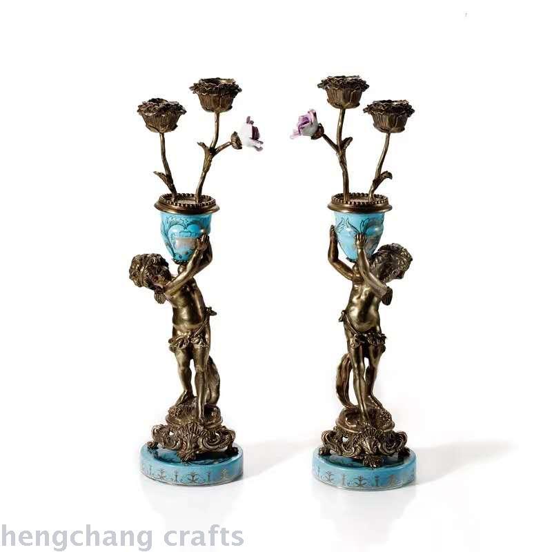 European-Style Classical Luxury Home Ornament Soft Decoration Hallway Living Room Decoration Ceramic with Copper Angel Decorative Candlestick Decoration 中文版