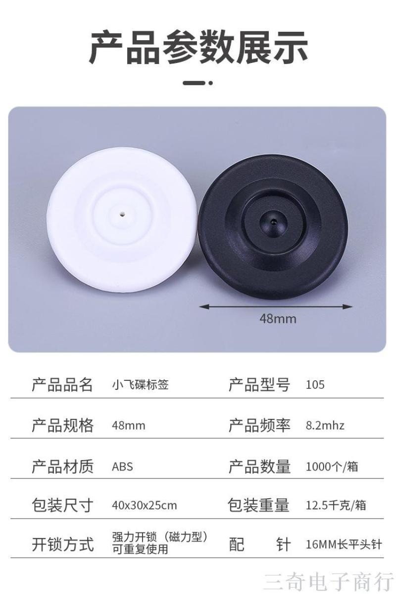 Black Little Flying Saucer Label Monochrome Small round Clothing Anti-Theft Hard Label ABS Flat End Needle Security Magnetic Snap19487