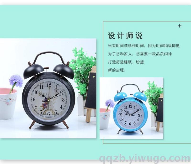 5-Inch Metal Painted White Surface Alarm Clock European Retro Iron Ringing Bell Children Wake up Alarm Watch 中文版