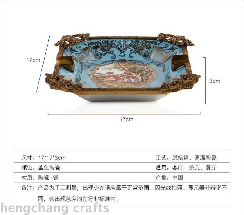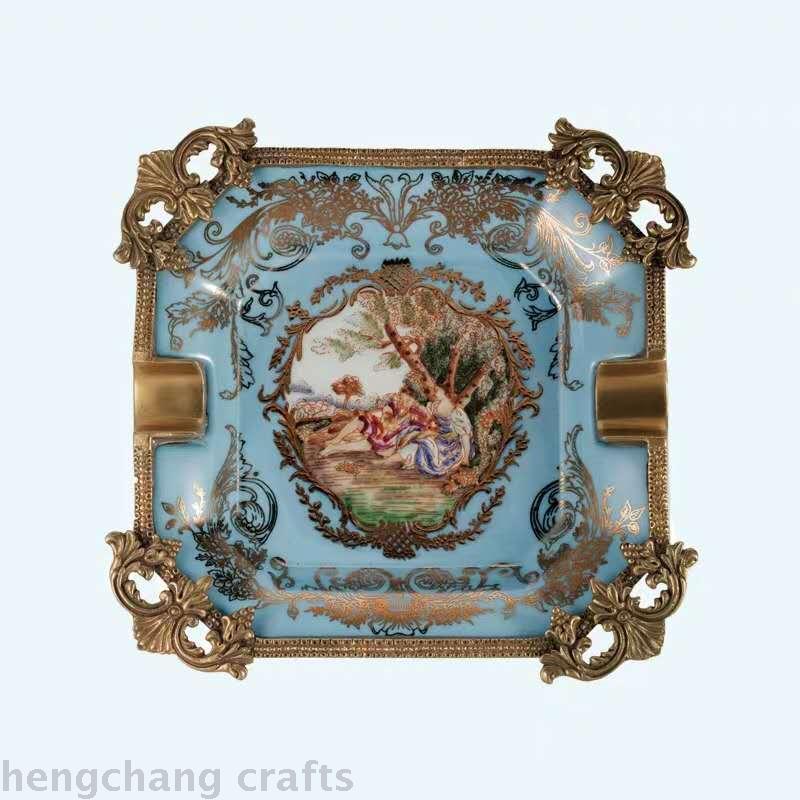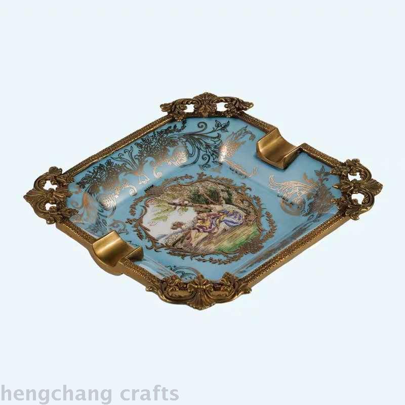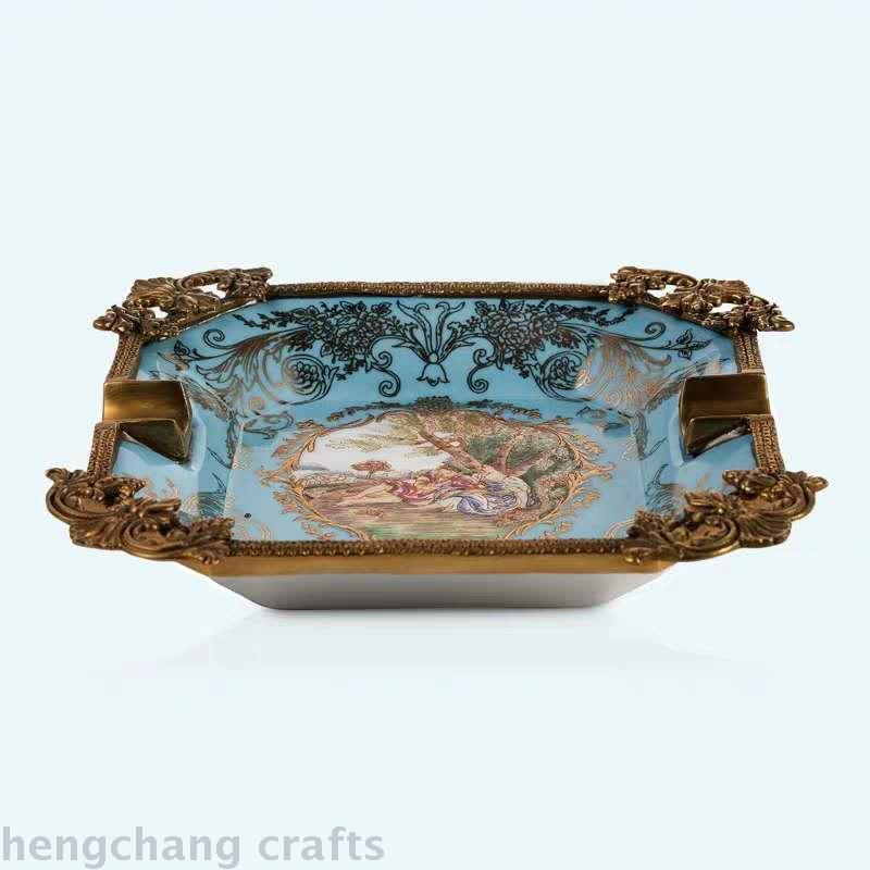 European American Style High Temperature Ceramic with Copper Ashtray Decoration High-End Luxury Soft Decoration Home Ornament Cigarette Dish Home 中文版