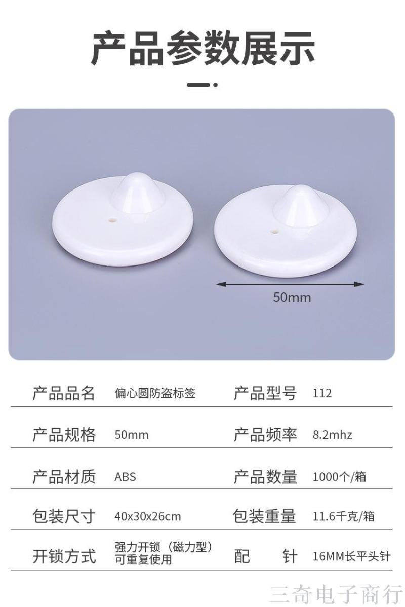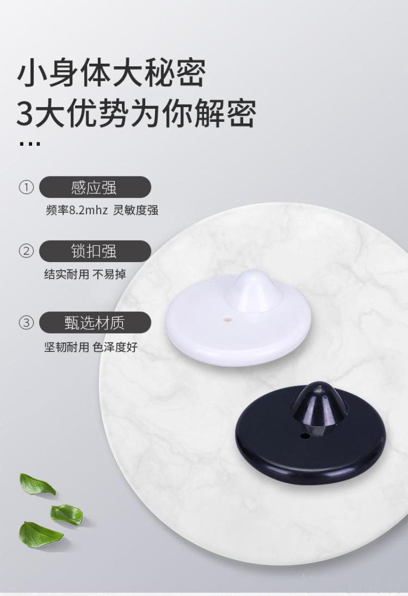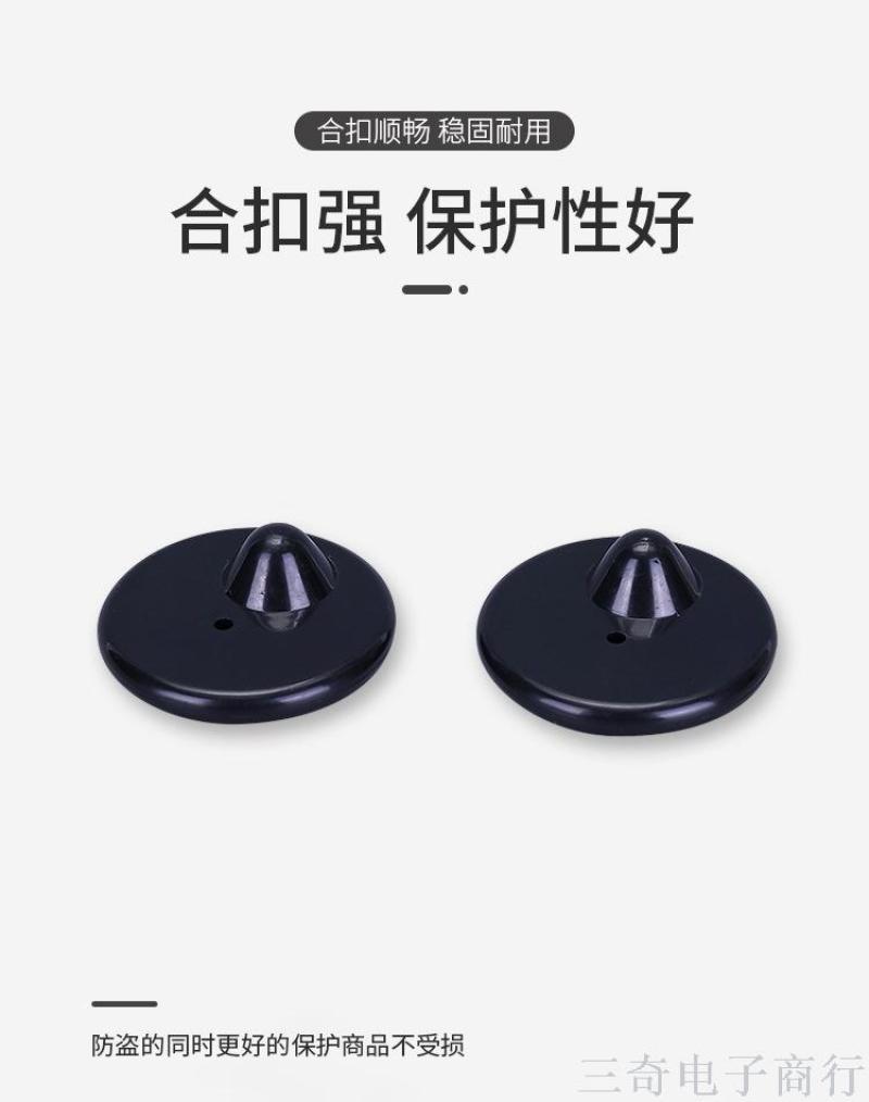 Black Eccentric round Anti-Theft Label ABS Flat End Needle Circle Anti-Theft Clasp Simple Monochrome Anti-Theft Label19487