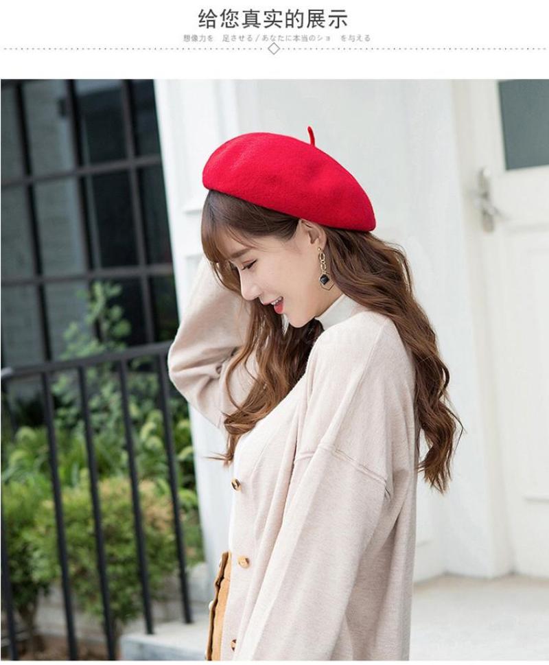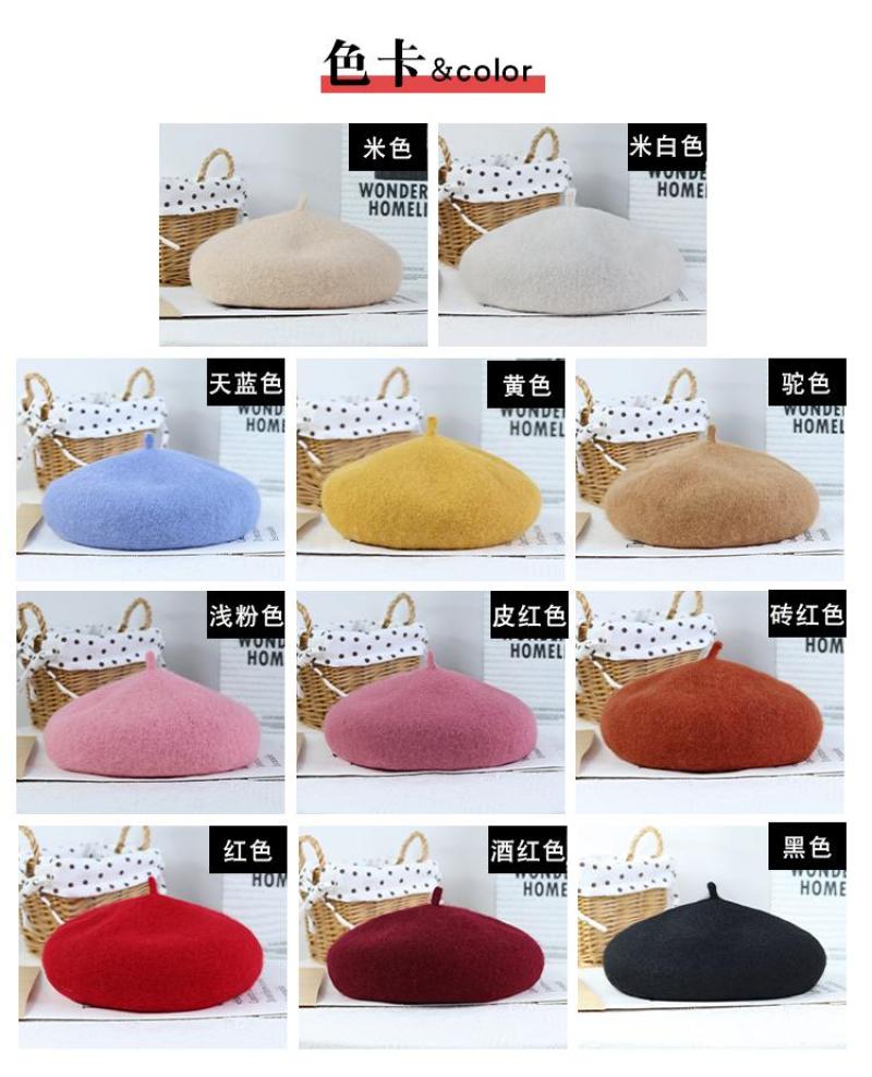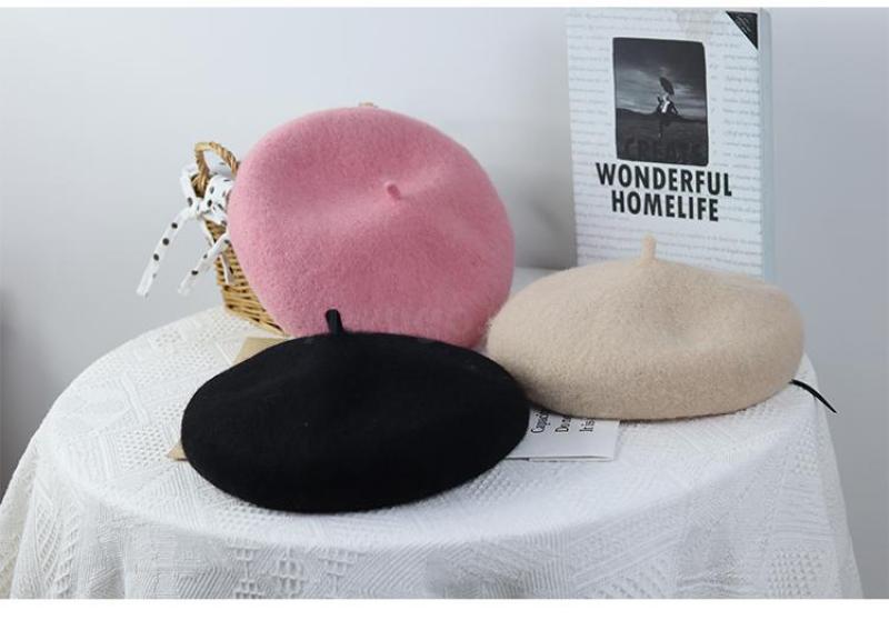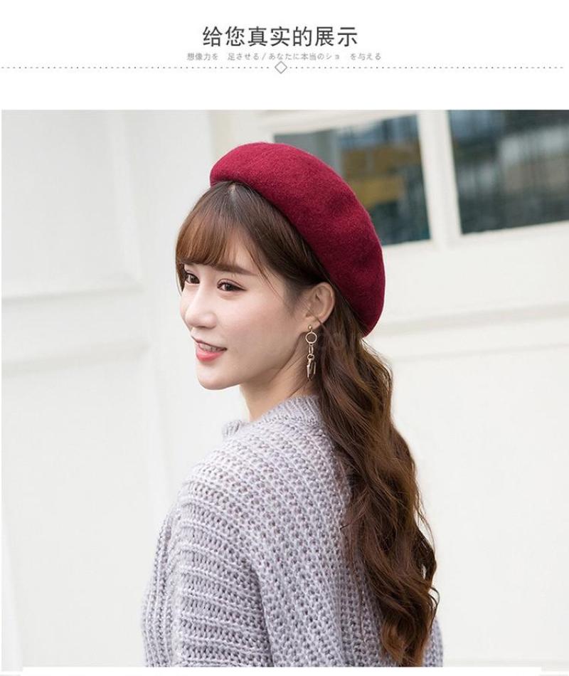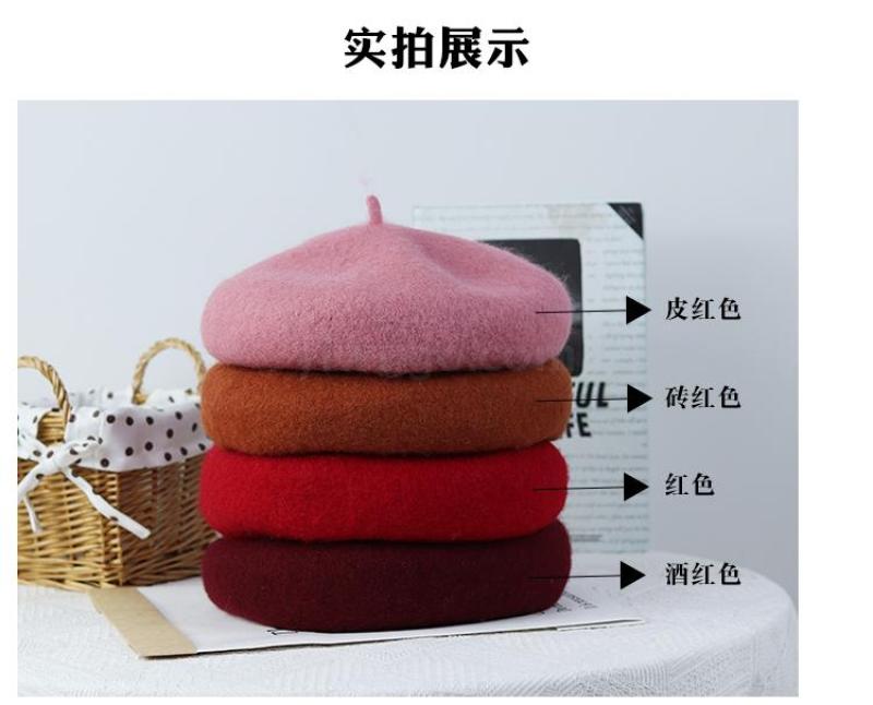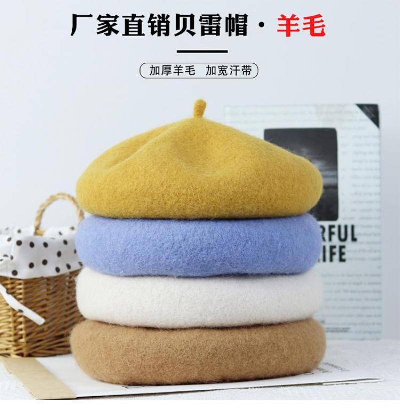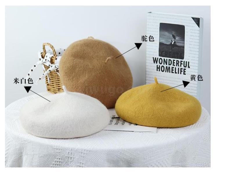 Winter 2020 new Beret female Korean version versatile retro warm bud padded mushroom wool painter hat 中文版