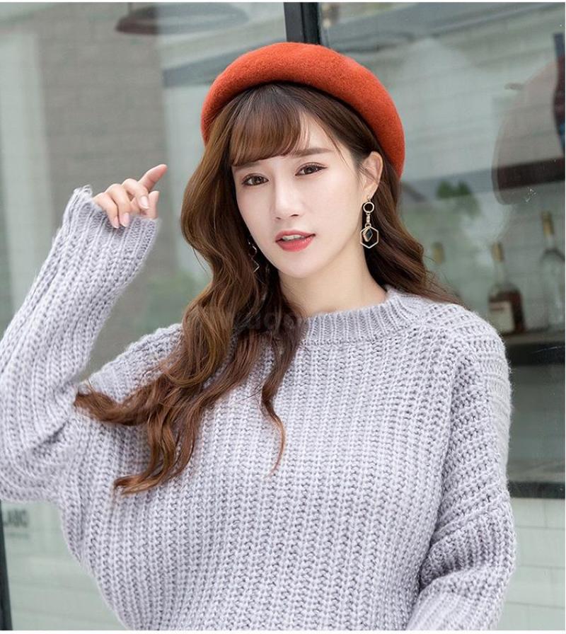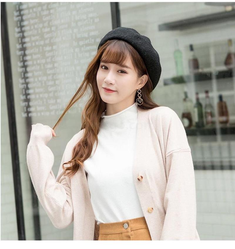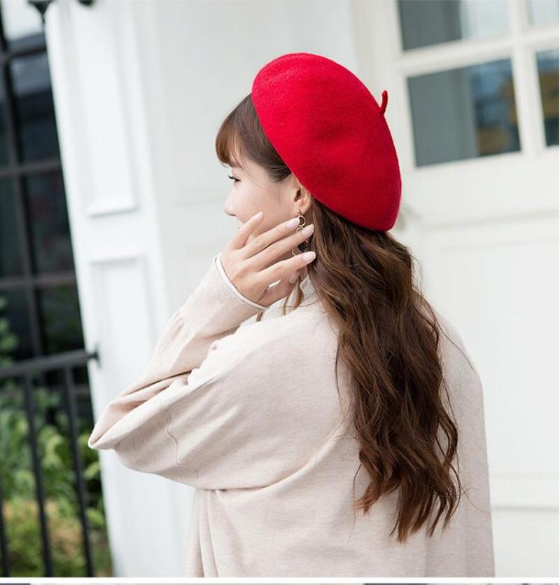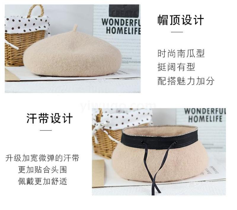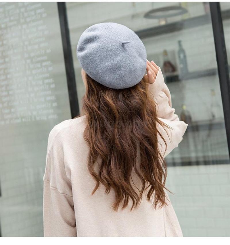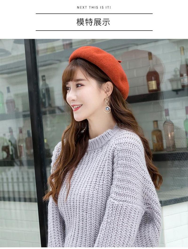 Winter 2020 new Beret female Korean version versatile retro warm bud padded mushroom wool painter hat 中文版