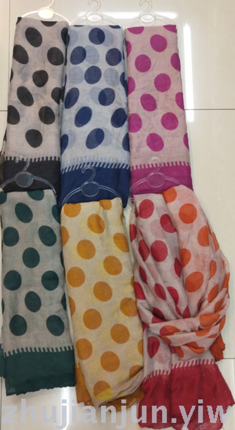 商品名称:双色圆点印花图案时尚巴厘纱围巾颜色款式多样