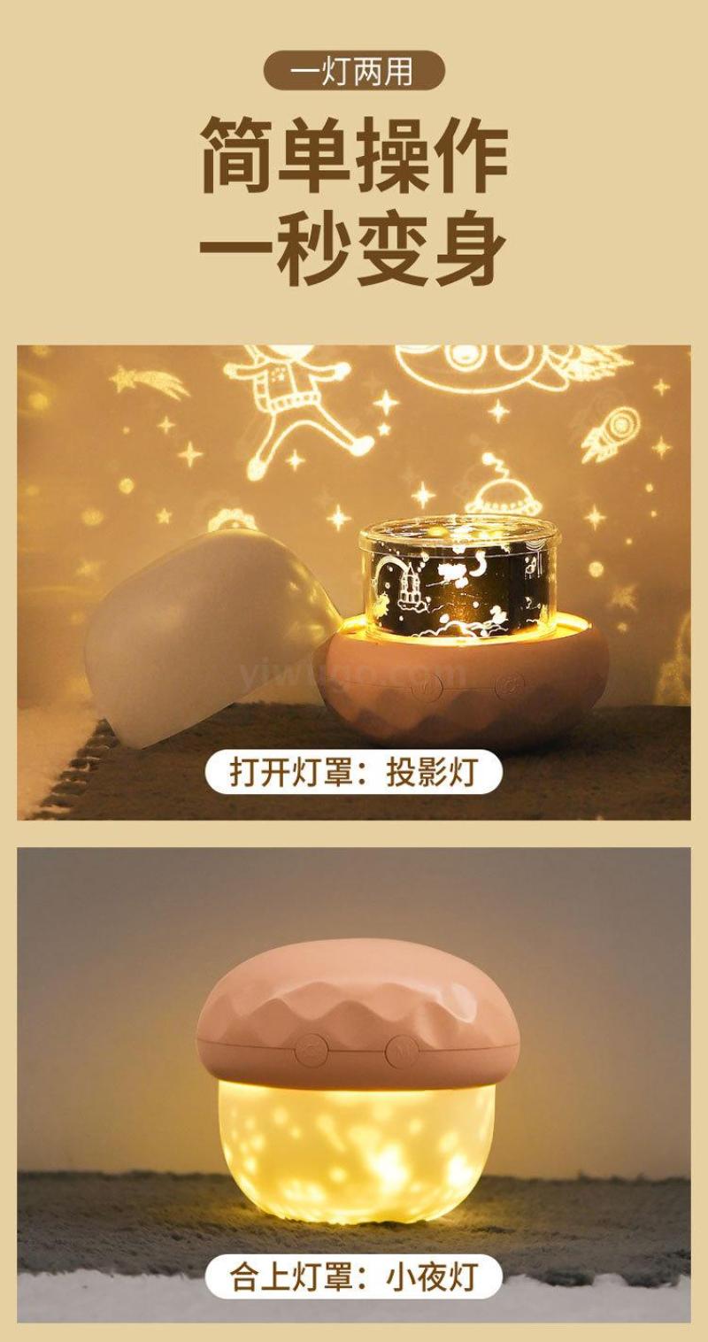 New Mushroom Flower Projection Lamp Bedside Nightlight Mini Compact Mushroom Shape Projection Nightlight 中文版