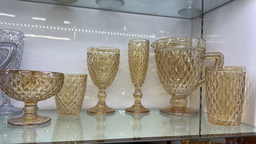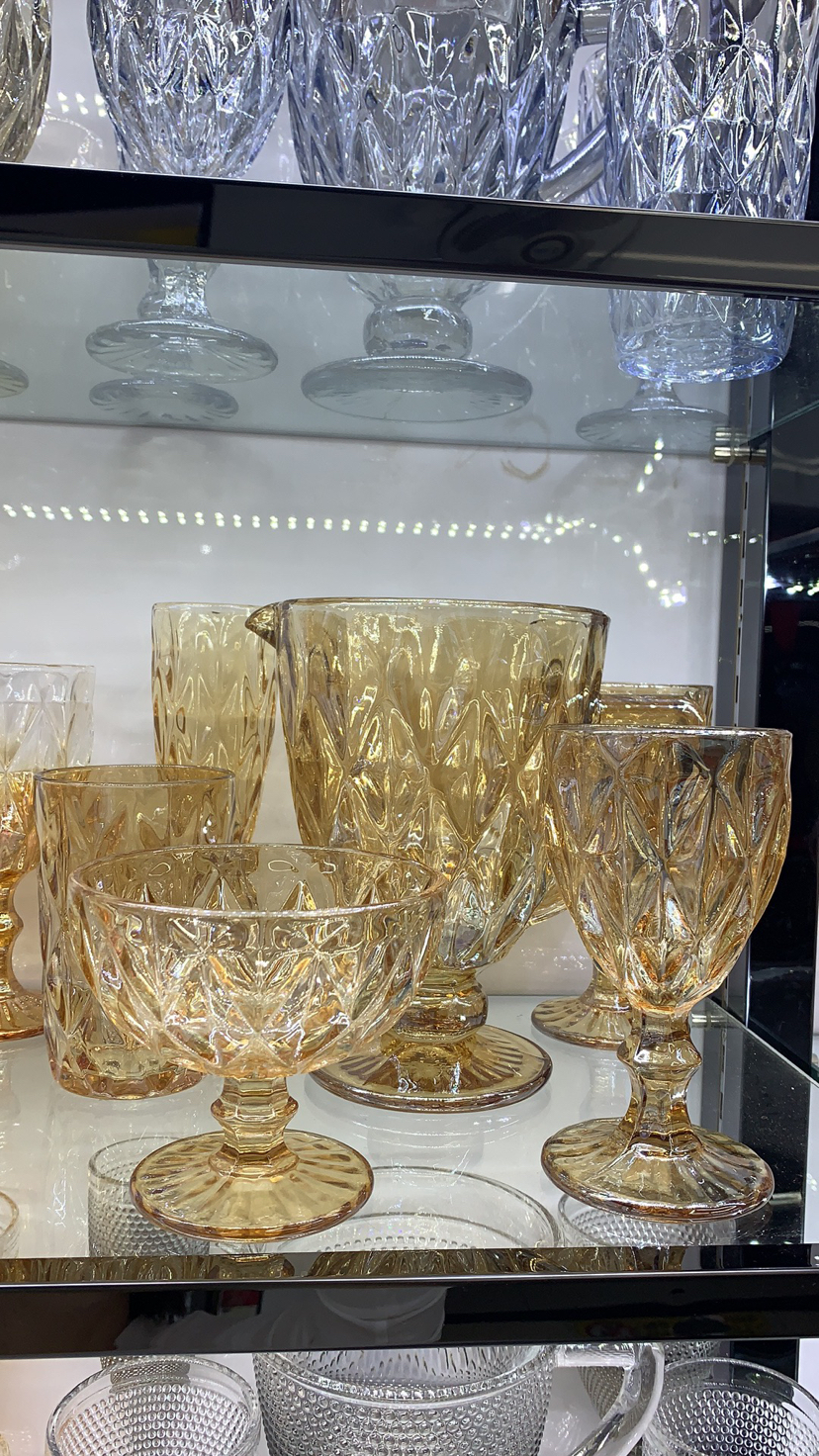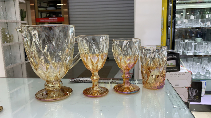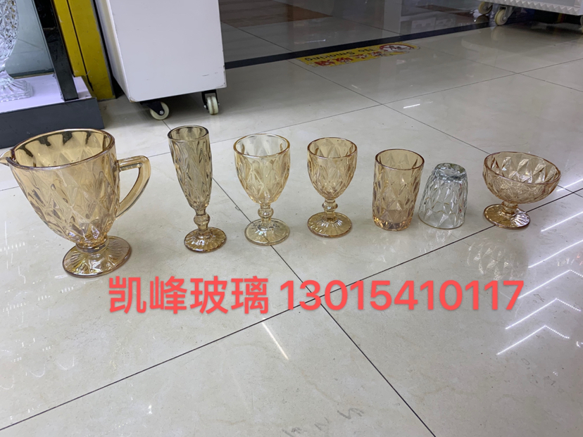kf kaifeng glass factory shop embossed pattern electroplating color series, gold plated, blue plated, 中文版