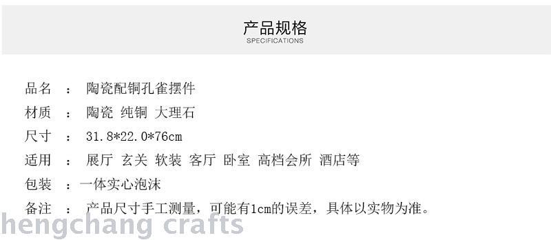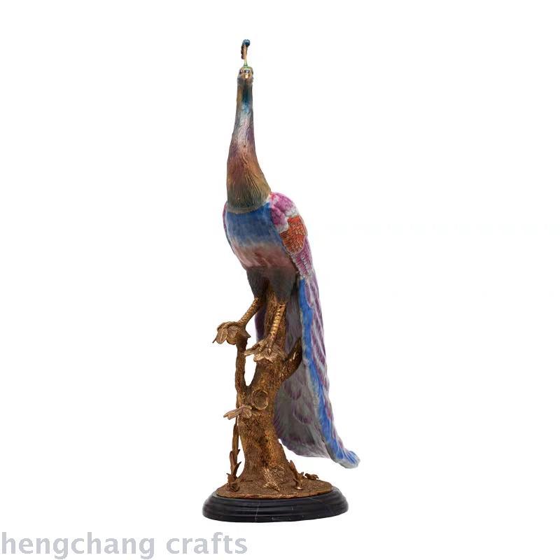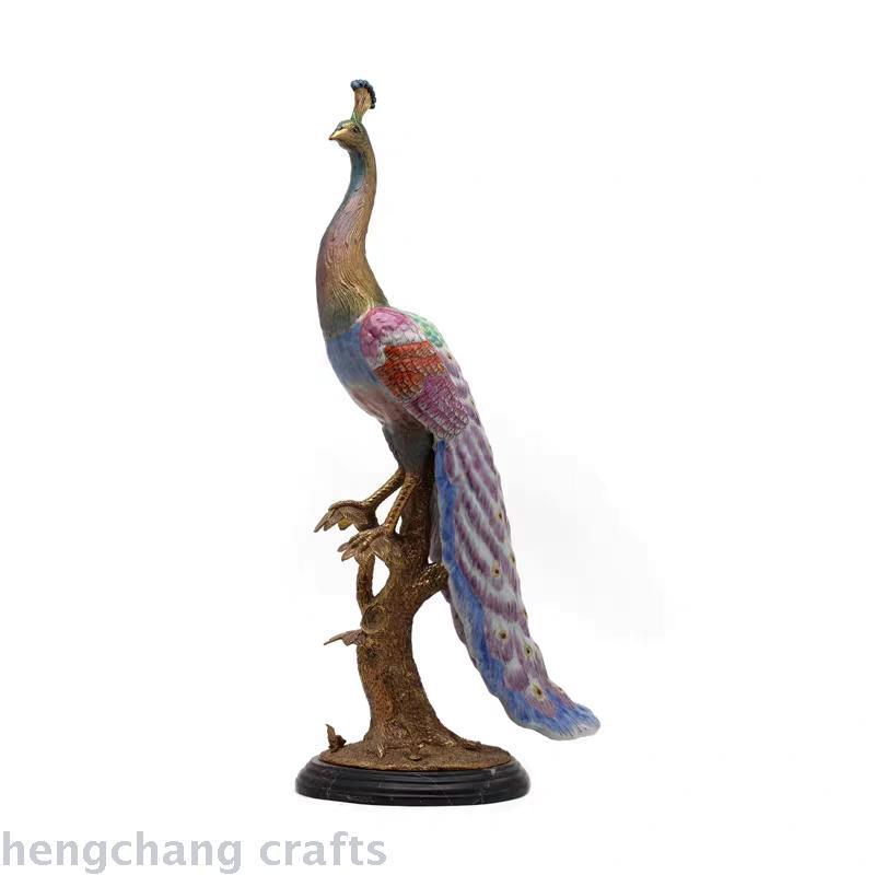 American Style Furnishings Ceramic with Copper Peacock Ornaments Copper with Ceramic Inlaid Copper Peacock Villa Club Crafts Furnishings 中文版