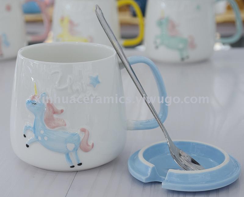 classic cute embossed unicorn ceramic cup coffee cup breakfast cup