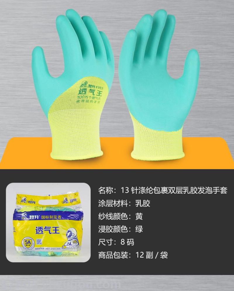 dengsheng labor protection gloves breathable king 989 latex foam dipping thickened wear-resistant non-slip gloves 12 pairs work 中文版