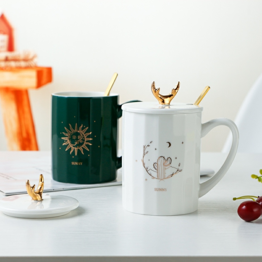 innovative nordic style ceramic cup internet celebrity live broadcast popular ceramic cup gift cup teacup water cup cup with cover 中文版