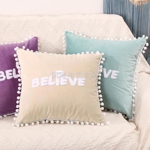 Nordic Ins wind cross-border hair bulb lace with Bulbose pillow Wholesale Solid-color sofa cushion pillow Case 中文版