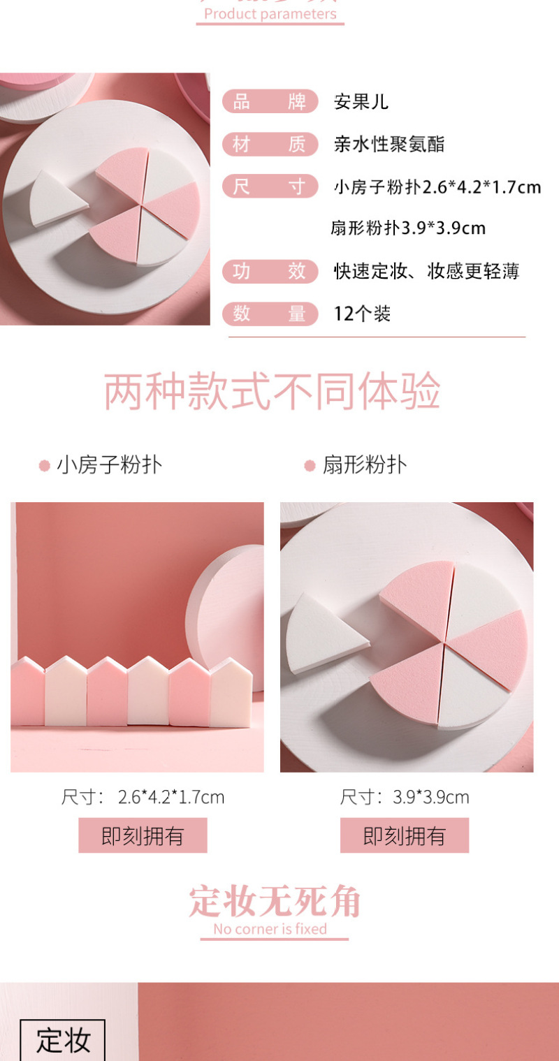Yue Guang Canned Powder Puff 12 Pack Factory Direct Sales Small House Triangle Makeup Puff Kit Soaking Water Bigger Powder Puff 中文版