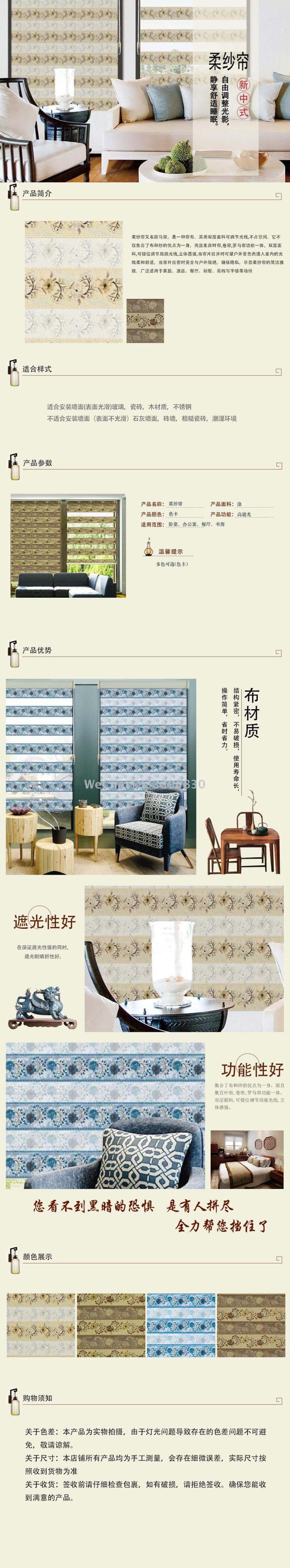 Size: Custom (Width: Fabric + Both Sides Accessories) Height: Including the Overall Height of the Upper and Lower Tracks