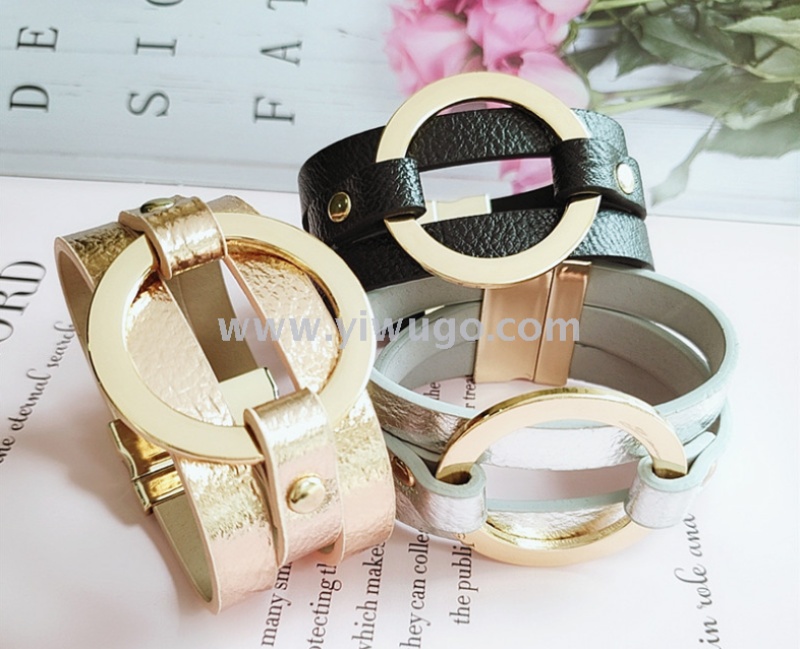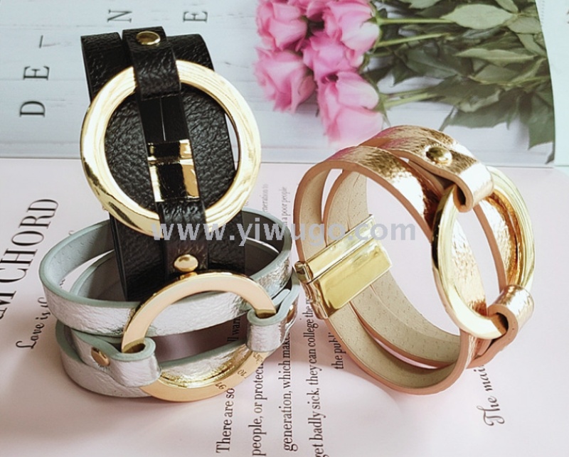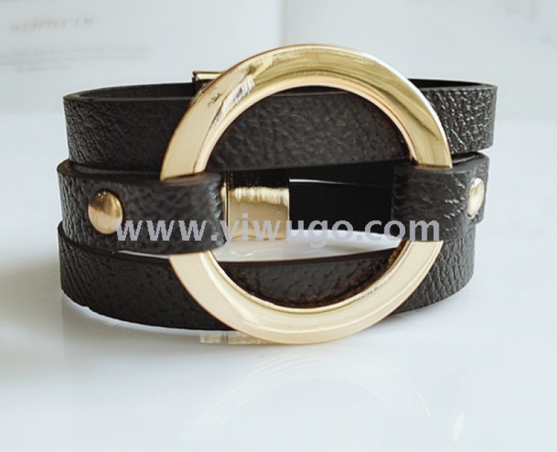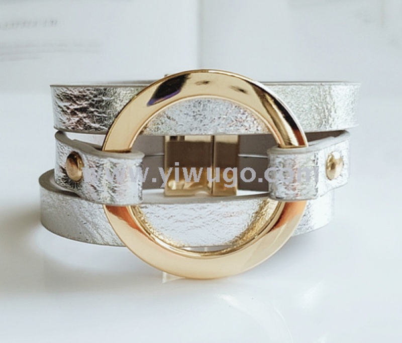 European and American fashion retro multi-layer PU bracelet for women, fashion alloy magnet clasp bracelet jewelry