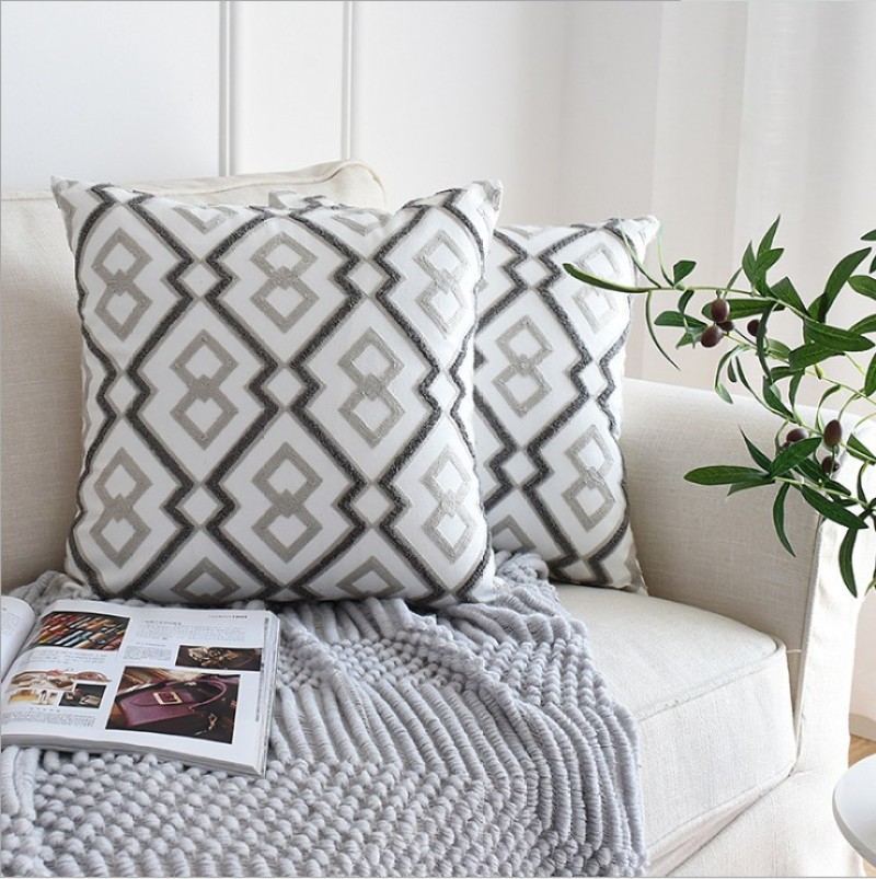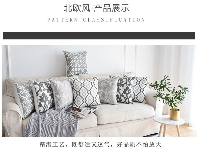 Nordic Geometry Embroidery Pillowcase Living room sofa cushion Fabric car waist pillow Pillow Case without core 中文版