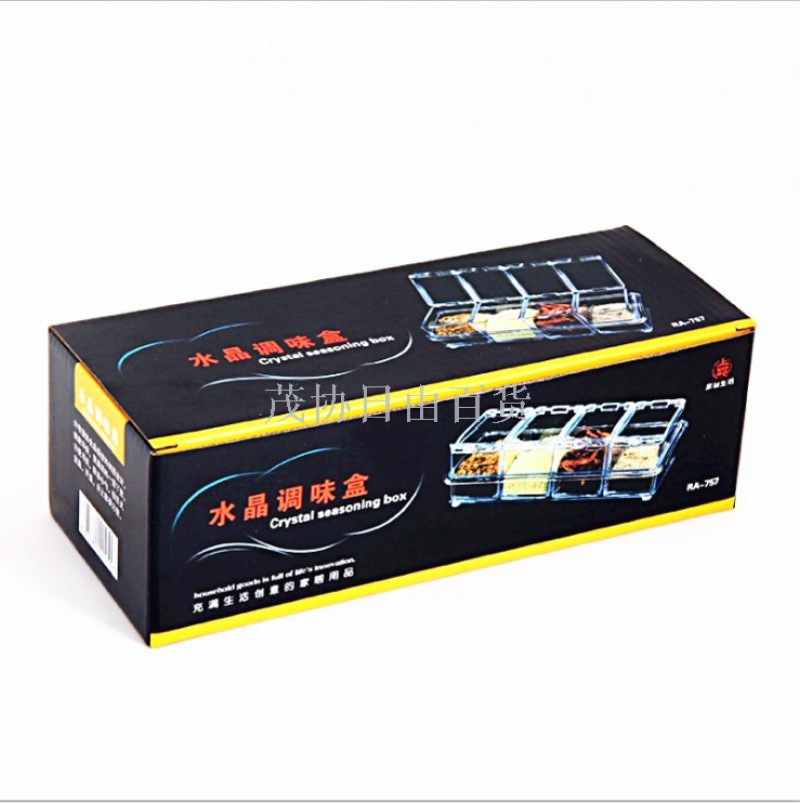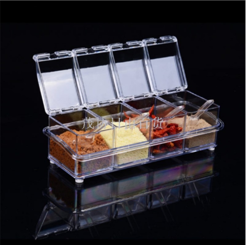 four grids kitchen spice box suit crystal transparent seasoning containers salt jar sucrier 中文版