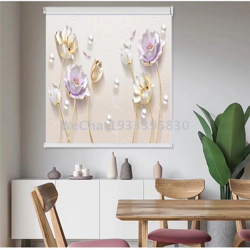 Style: 3D Flower Lift-and-Lower Roll-up Shade (Vast Pattern Options) Customizable