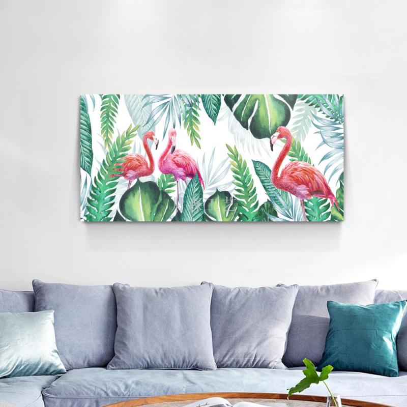 frameless painting bedside hanging painting wooden board hanging painting flamingo green leaf nordic style 中文版