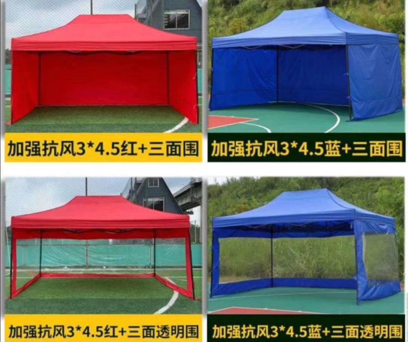 Niujin cloth car tent has high water resistance, good waterproof performance, and the color is red. The specifications include 3*3m, 2*3m, 2*2m, 2.5*2.5m, 3*4m, 3*4.5m, and 3*6m. The wholesale price is negotiable, and the minimum order quantity and packing quantity can be customized according to customer requirements. The tent pole has high strength and good rebound, with the functions of windproof, rainproof, dustproof, moistureproof, and moistureproof. Niujin cloth car tent can be used for field trips, allowing users to have close contact with nature, and it is easy to set up, with a small folded area, convenient for users to carry. Niujin cloth car tent is made of high-quality niujin cloth material, with reliable quality and durable performance, providing a relatively comfortable rest environment.