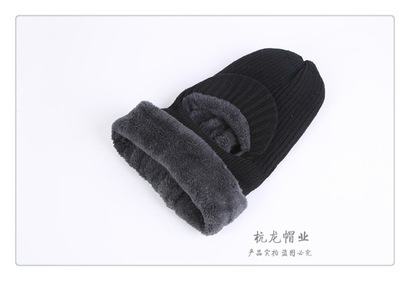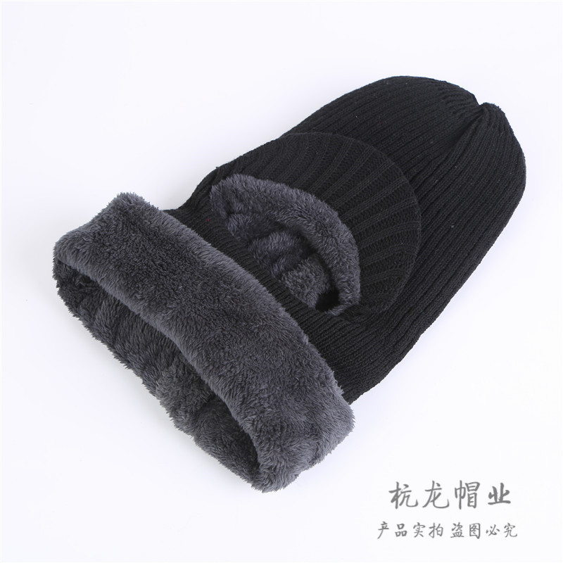 Earflaps Cap Men's Winter Fleece-Lined Warm Wool Hat Scarf Integrated Thickened Riding Cap Neck Protection Hooded PNE-Piece Suit 中文版