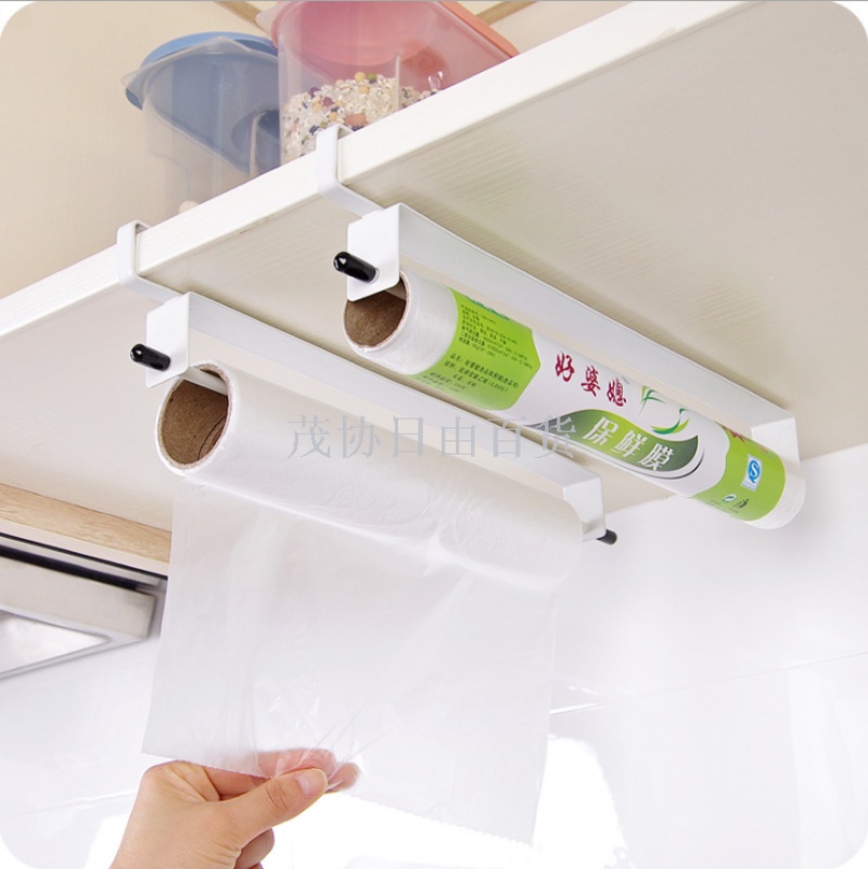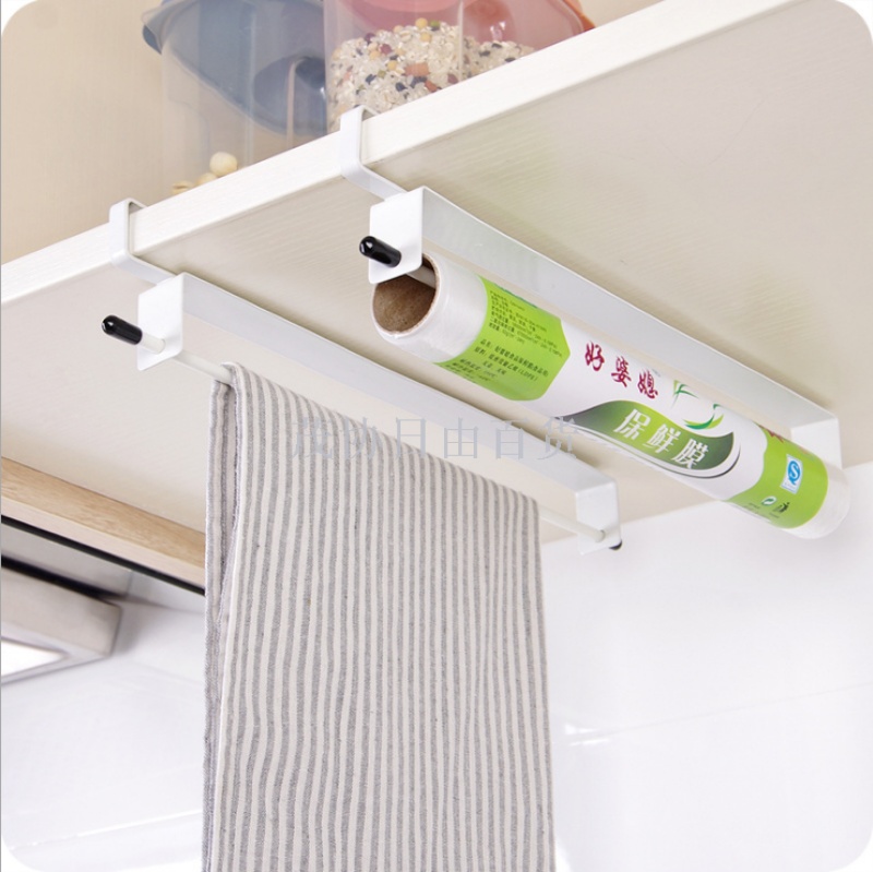 iron japanese style plastic wrap rack cabinet nail-free reel freshness protection package storage rack kitchen towel rack 中文版
