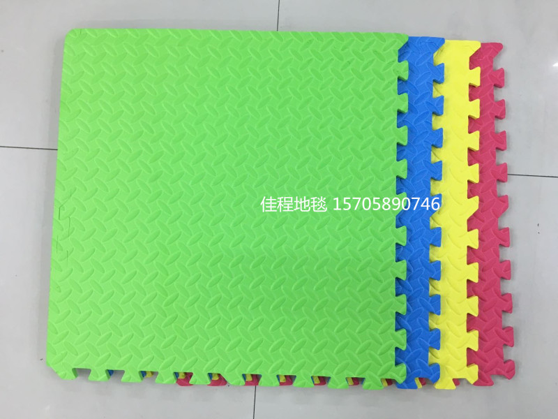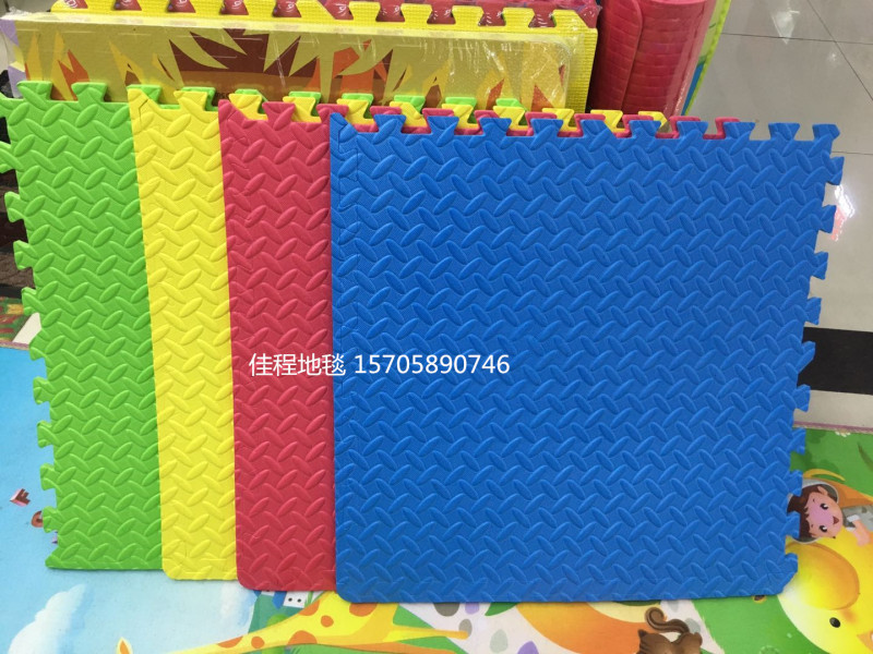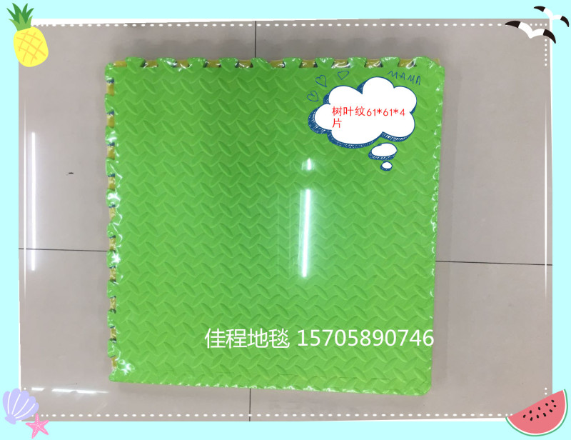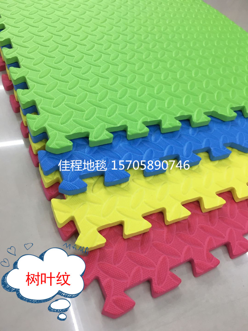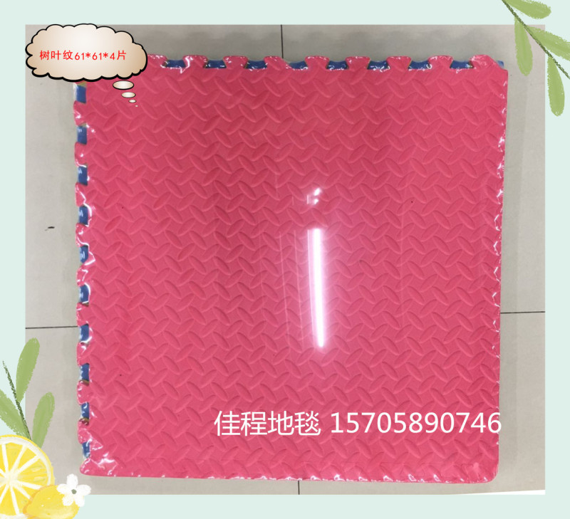 Leaf pattern EVA plain color puzzle children's puzzle mat EVA mat children's anti-skid interlocking mat Size 61*61*4 pieces Each package contains four colors mixed red, yellow, blue, green, and can also be made in black. One piece 10 sets, cardboard packaging, high quality, best-selling model, can be customized 2.0cm thick/2.5cm thick, specific details to be discussed.