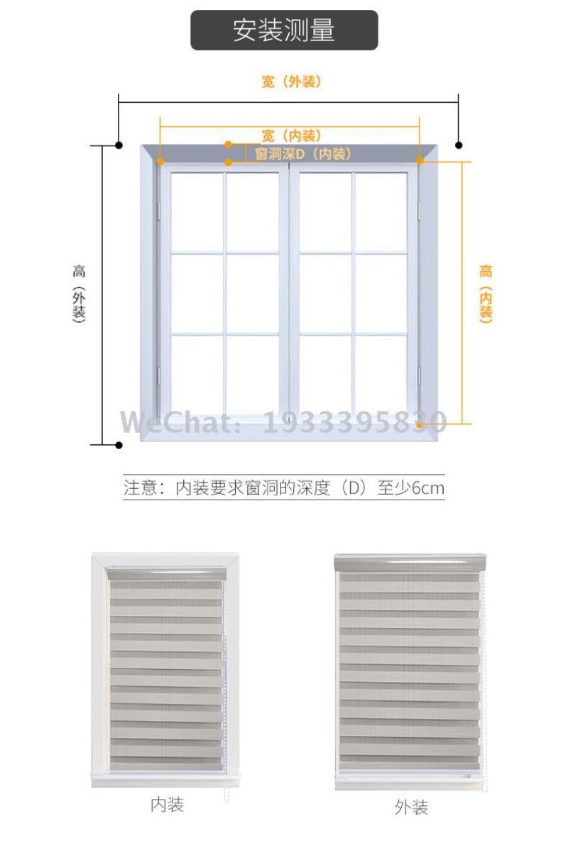 Size: Custom (Width: Fabric + Both Sides Accessories) Height: Including the Overall Height of the Upper and Lower Tracks