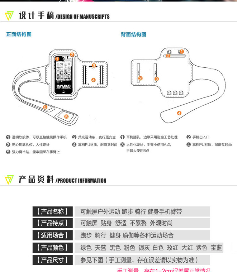 Mobile phone arm bag Sports bag Mobile phone bag Running mobile phone bag fitness carry-on bag cycling arm bag 中文版