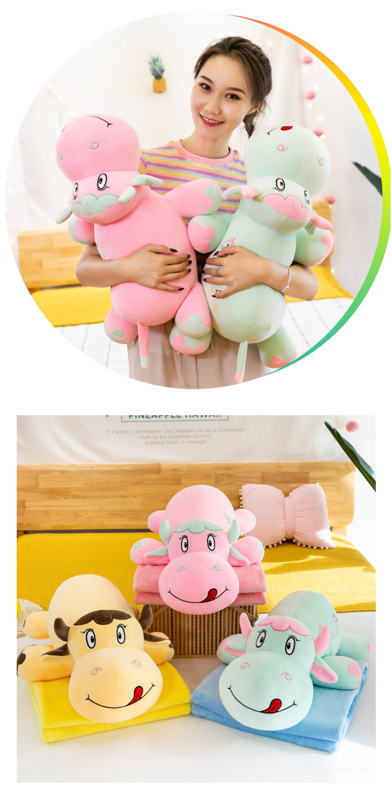 new cow pillow blanket doll plush toy girls' office sofa nap blanket lazy pillow customization 中文版