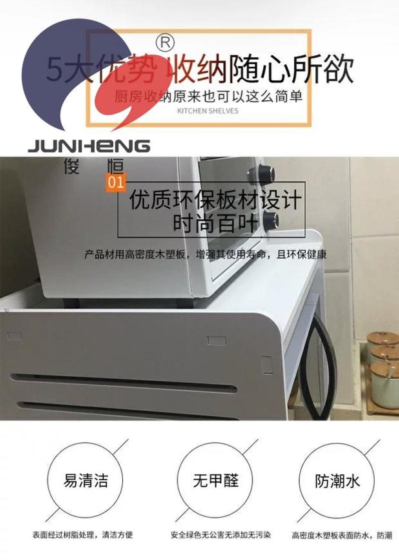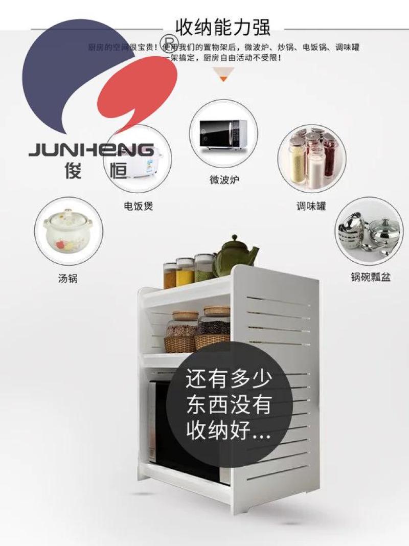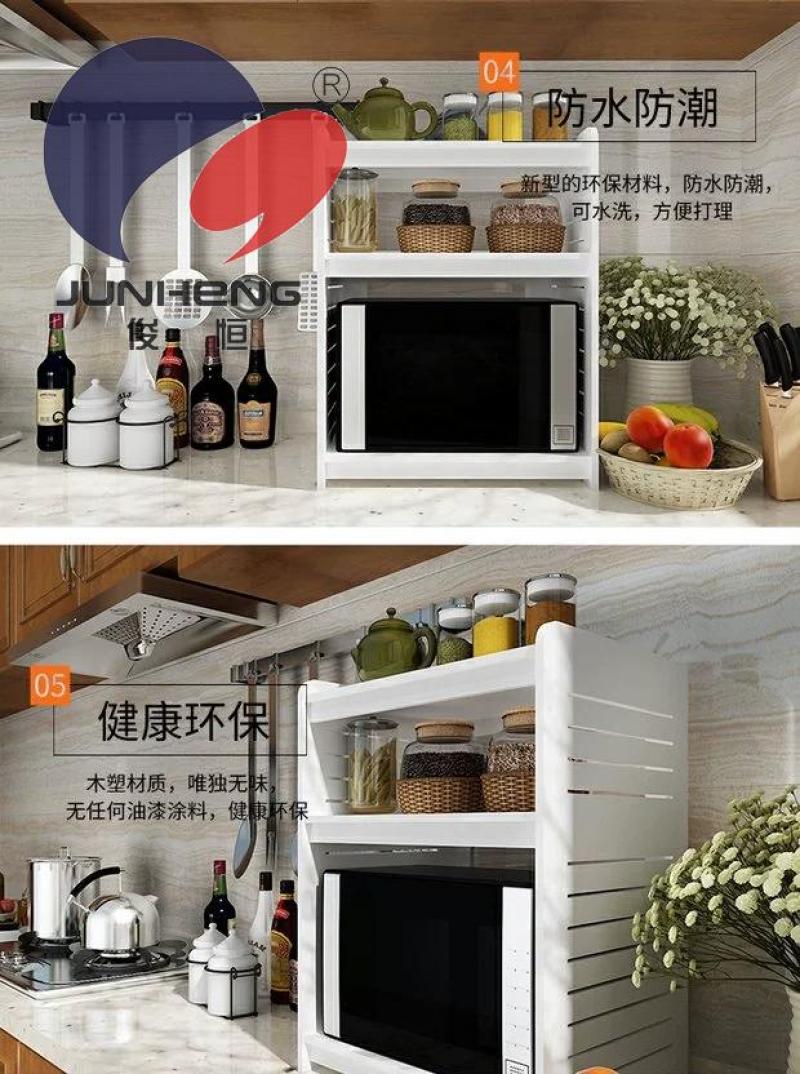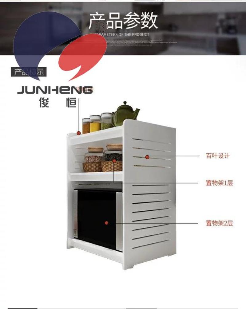 【Product Name】: Large Kitchen Shelf 【Product Model】: RD1833 Product Size: 58*38*33*17CM, Height: 66cm 【Product Material】: Wood-Plastic Composite Panel