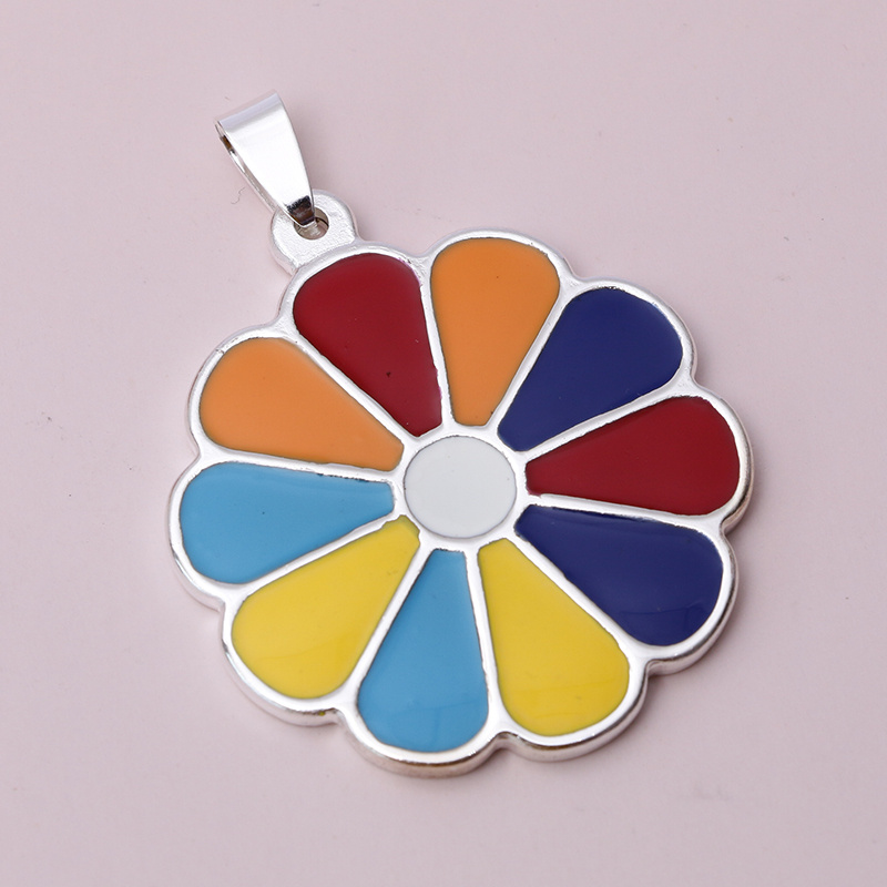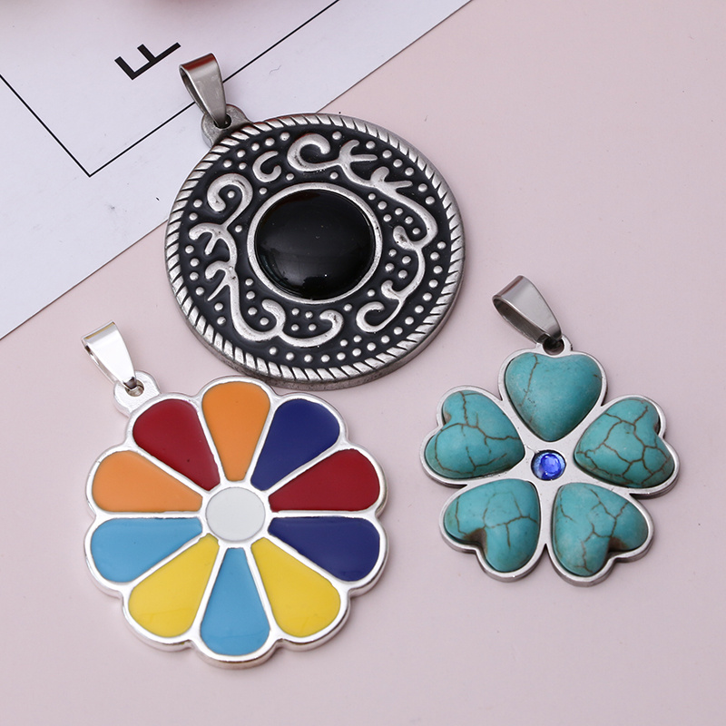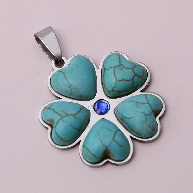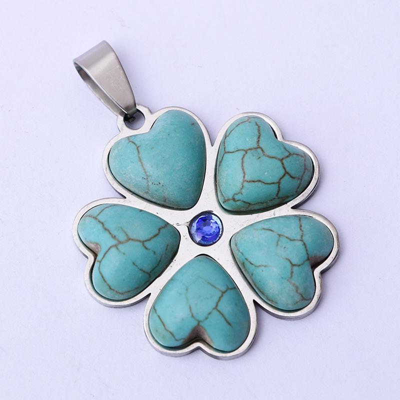 stainless steel love flower colorful blue love round flower bracelet necklace pendant fashion trend factory direct sales