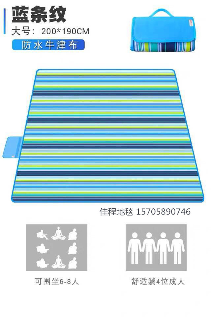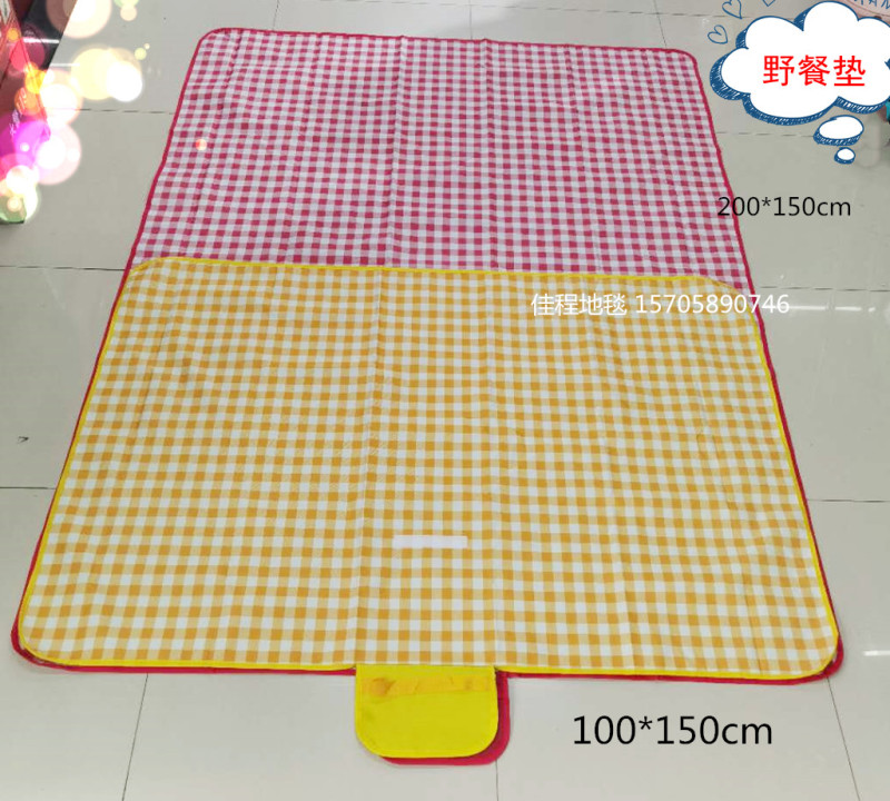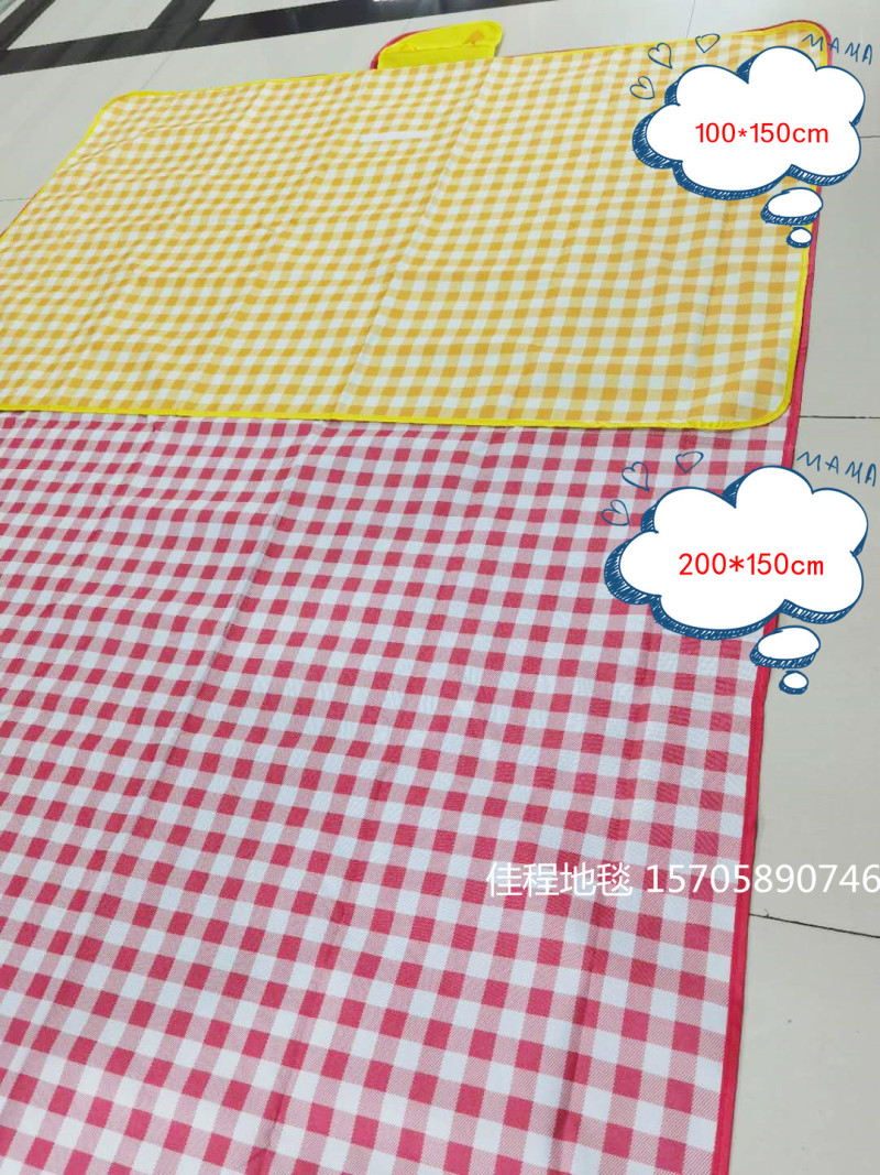 Outdoor supplies medium Oxford cloth picnic mat outdoor mat beach mat Oxford cloth 600D bottom PVC waterproof layer quality is good, can mix patterns, also can be clear pattern, medium size 150*180cm. One piece 40 pieces, individual set of OPP bags, woven bag packaging.