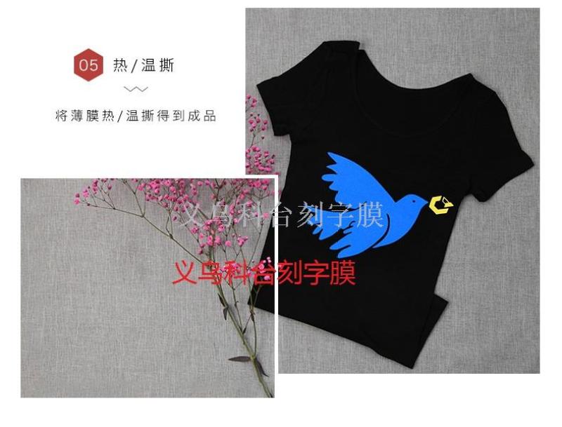 5: The production of the product is simple, arbitrary and strong, easy to take the drawing, the designed pattern can be cut by cutting plotter, and then use hot stamping machine for heat transfer. Also by manual cutting patterns, the use of household electric iron for heat transfer, the operation is very simple.